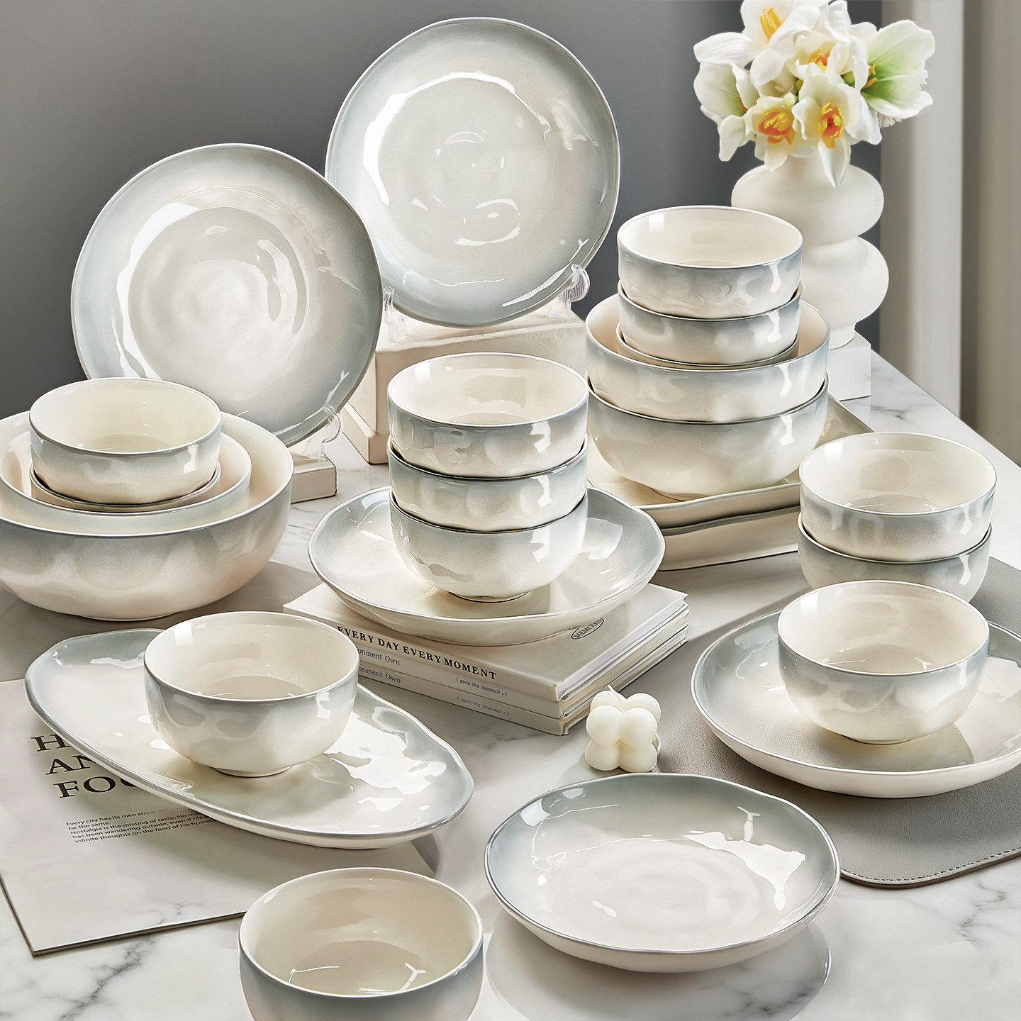 📚 高级感碗碟套装家用2026新款简约碗盘乔迁碗筷陶瓷釉下彩餐具盘子