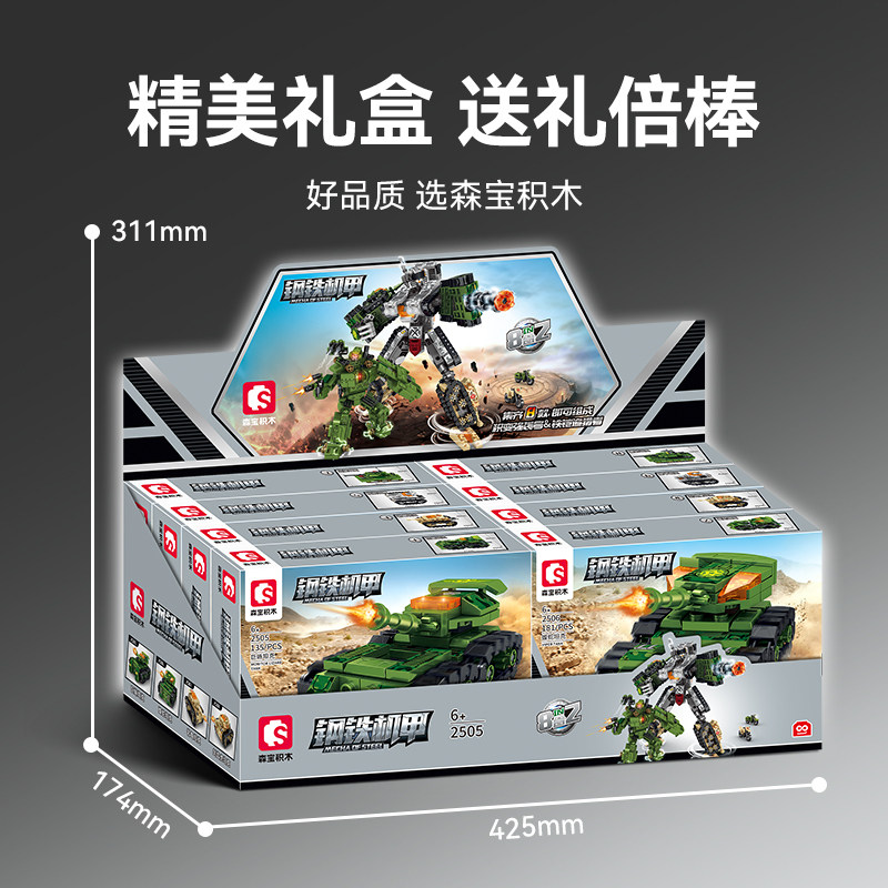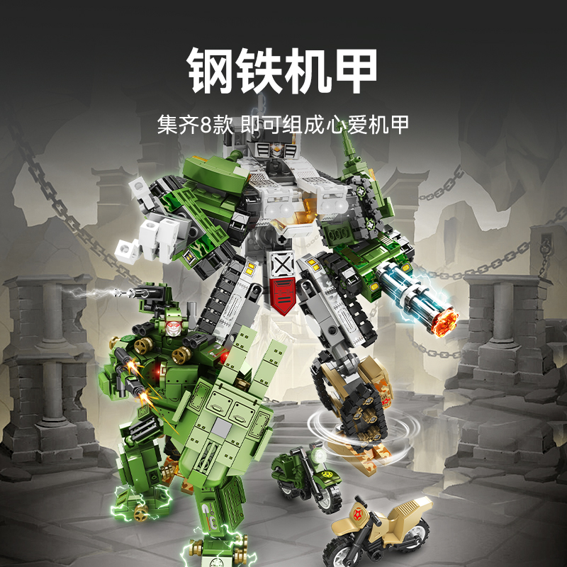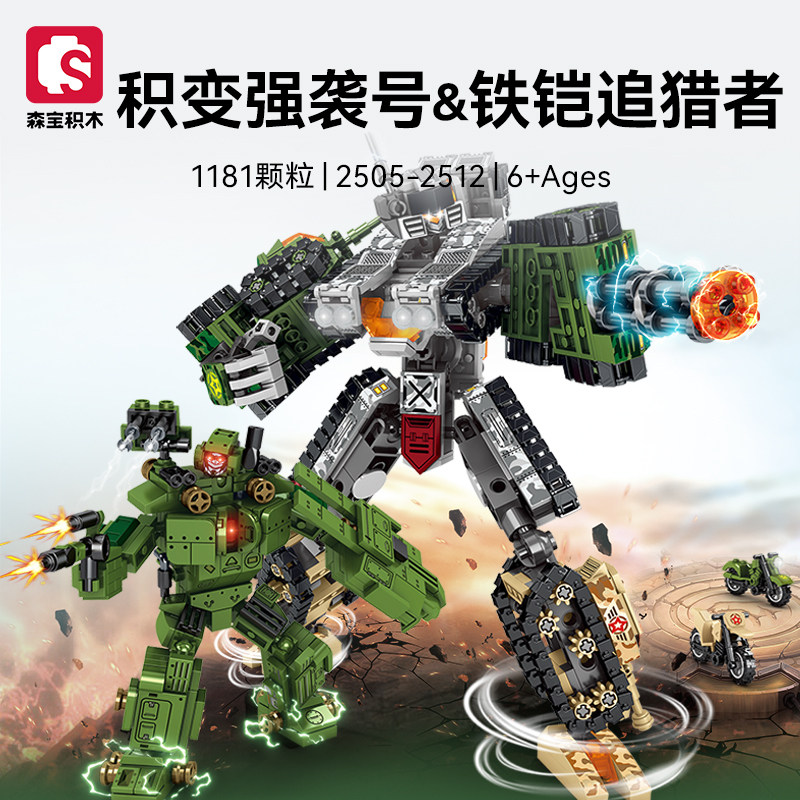 📚 森宝8合2积变强袭号铁铠追猎者战神金刚组装模型男孩拼装积木玩具