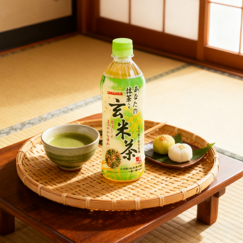 📚 日本进口SANGARIA三佳利一休茶屋抹茶玄米茶饮料日式茶500ml/瓶