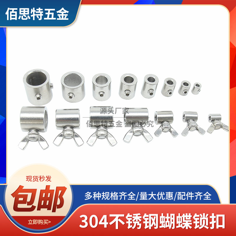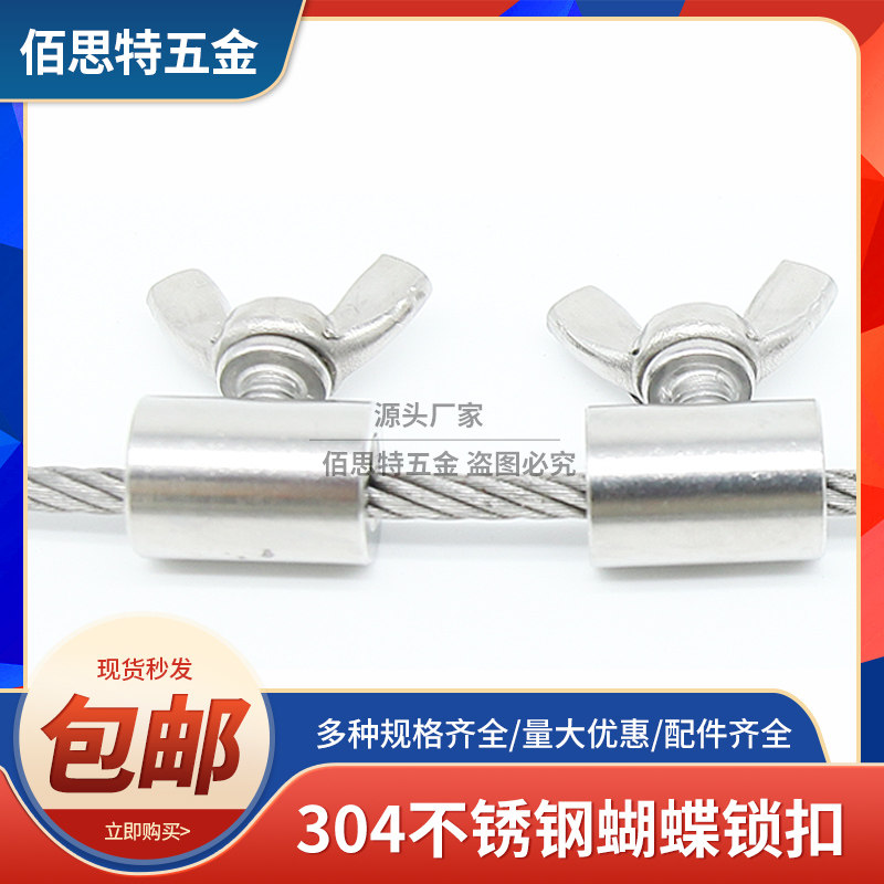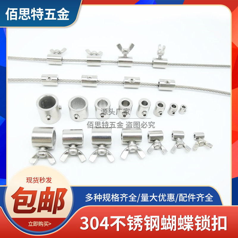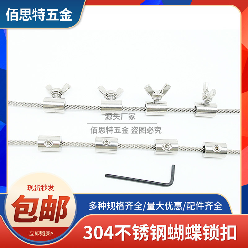 📚 304不锈钢蝴蝶扣钢丝绳单双股锁紧夹头手柠螺丝绳卡压轧头紧固器
