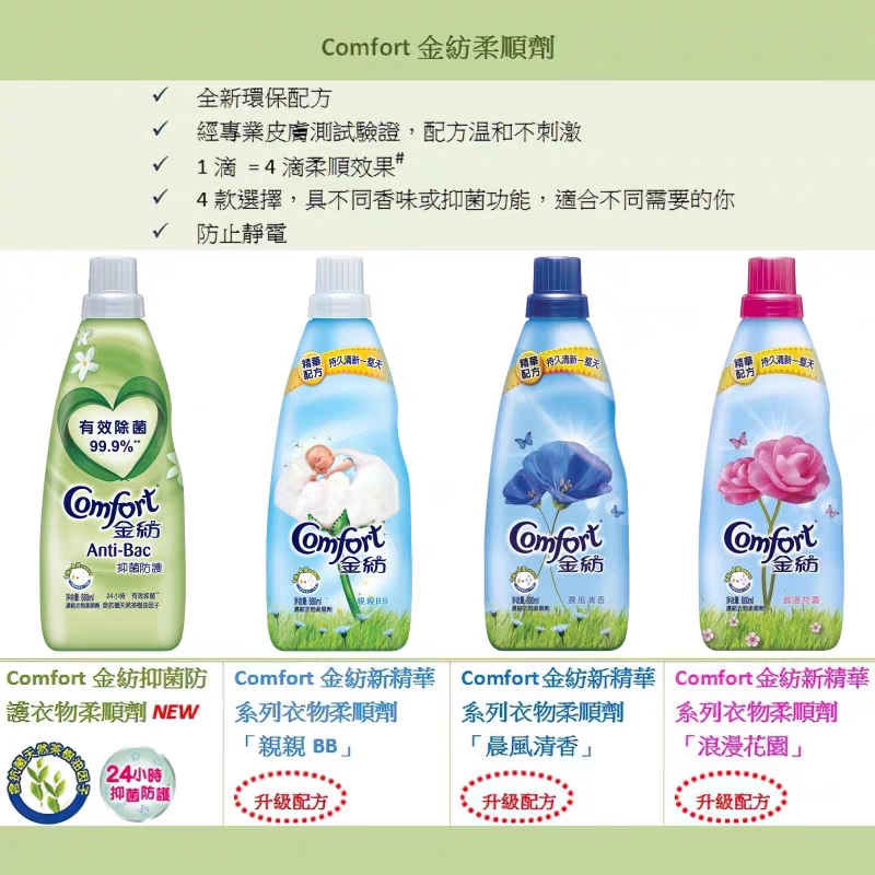 📚 港版正品Comfort金纺浓缩衣物柔顺剂880ml亲亲BB抑菌防护清香花香