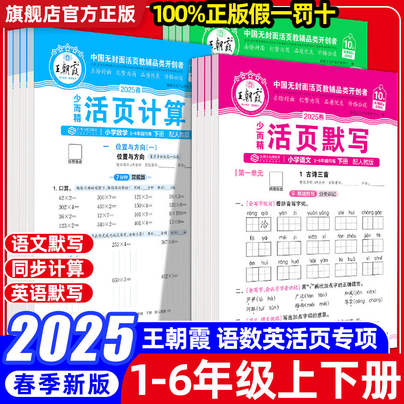 📚 2025春王朝霞活页默写计算本一二三四五六年级下册同步练习册人教版语文数学英语专项训练计算能手口算看拼音写词语寒假预习纸上册