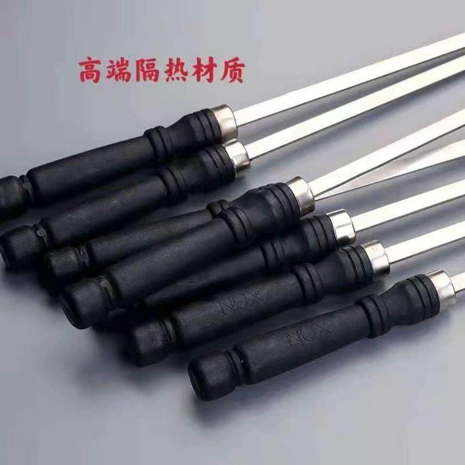 📚 不锈钢高光塑料手柄扁签圆签羊肉串烤肉工具烤炉铁扁签配件烧烤针