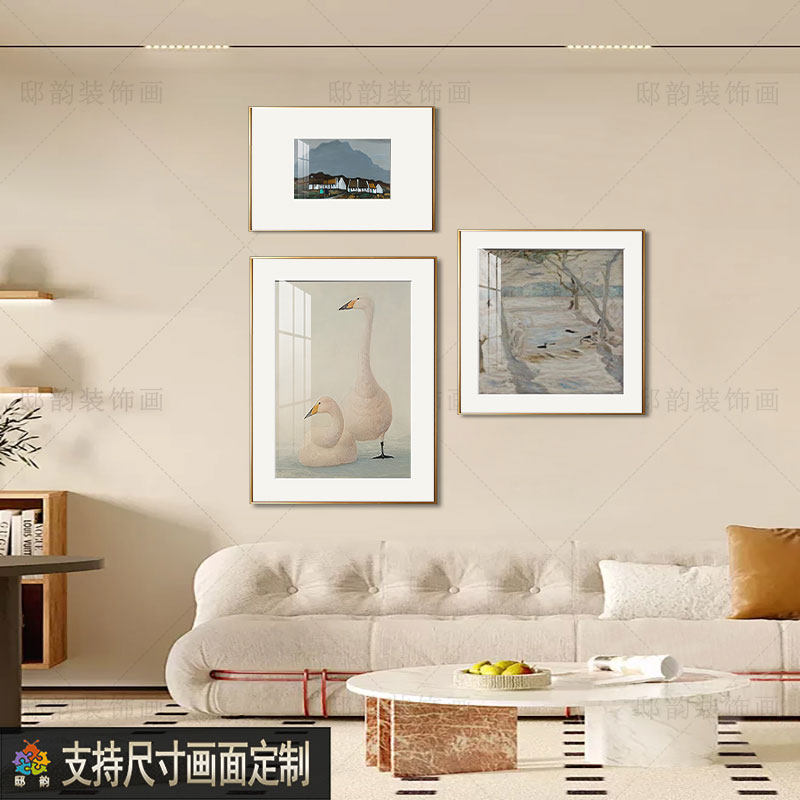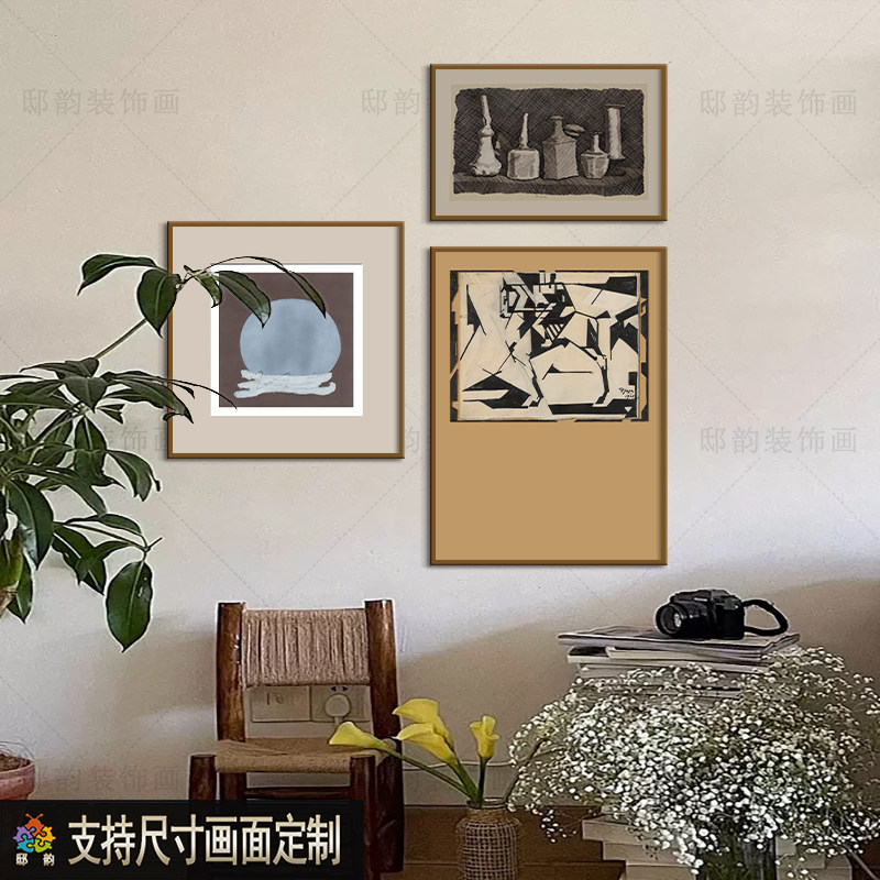 📚 中古风民宿酒店装饰画餐厅客厅组合晶瓷画样板间软装挂画壁画定制