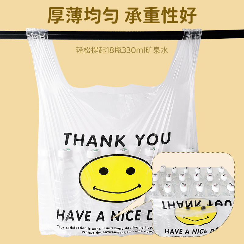 📚 透明笑脸塑料袋批发加厚方便袋外卖包装购物打包背心手提袋垃圾袋