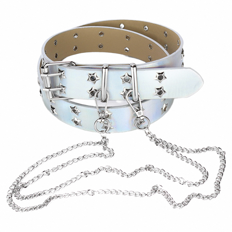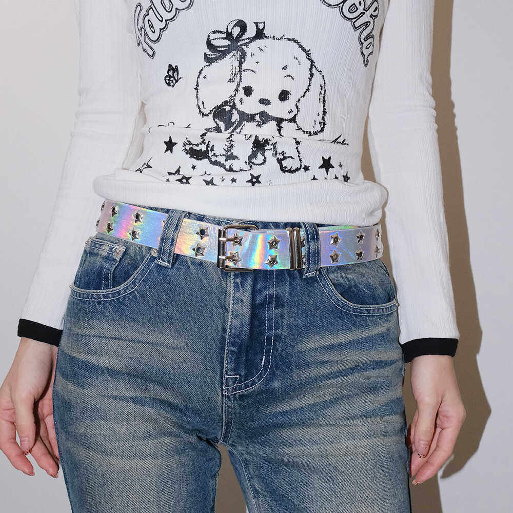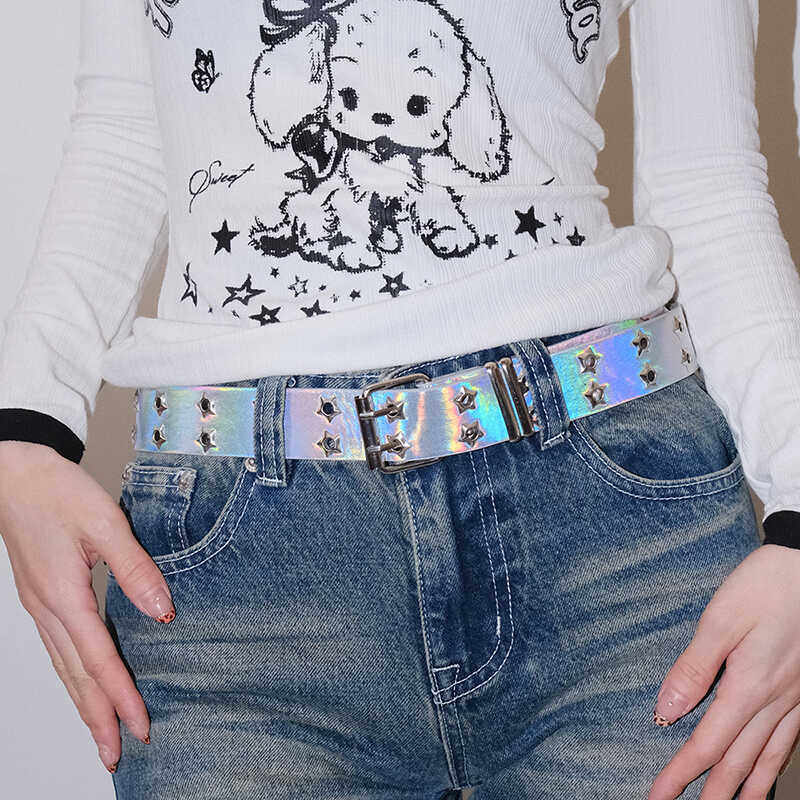 📚 镭射反光腰带免打孔新款星星百搭皮带男女亚文化辣妹y2k配饰