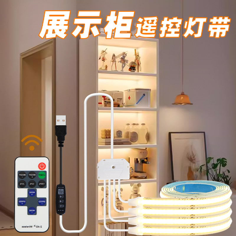 📚 自粘式usb智能遥控橱柜cob灯带led手办盲盒展示柜明装免开槽柜灯