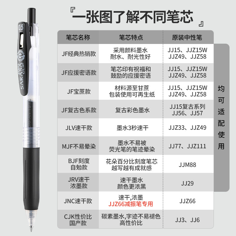 📚 日本ZEBRA斑马笔芯黑0.5按动中性笔笔芯JF-0.5黑色水笔芯红笔芯jf0.5替芯0.5官网同款适用于JJ15/JJ77