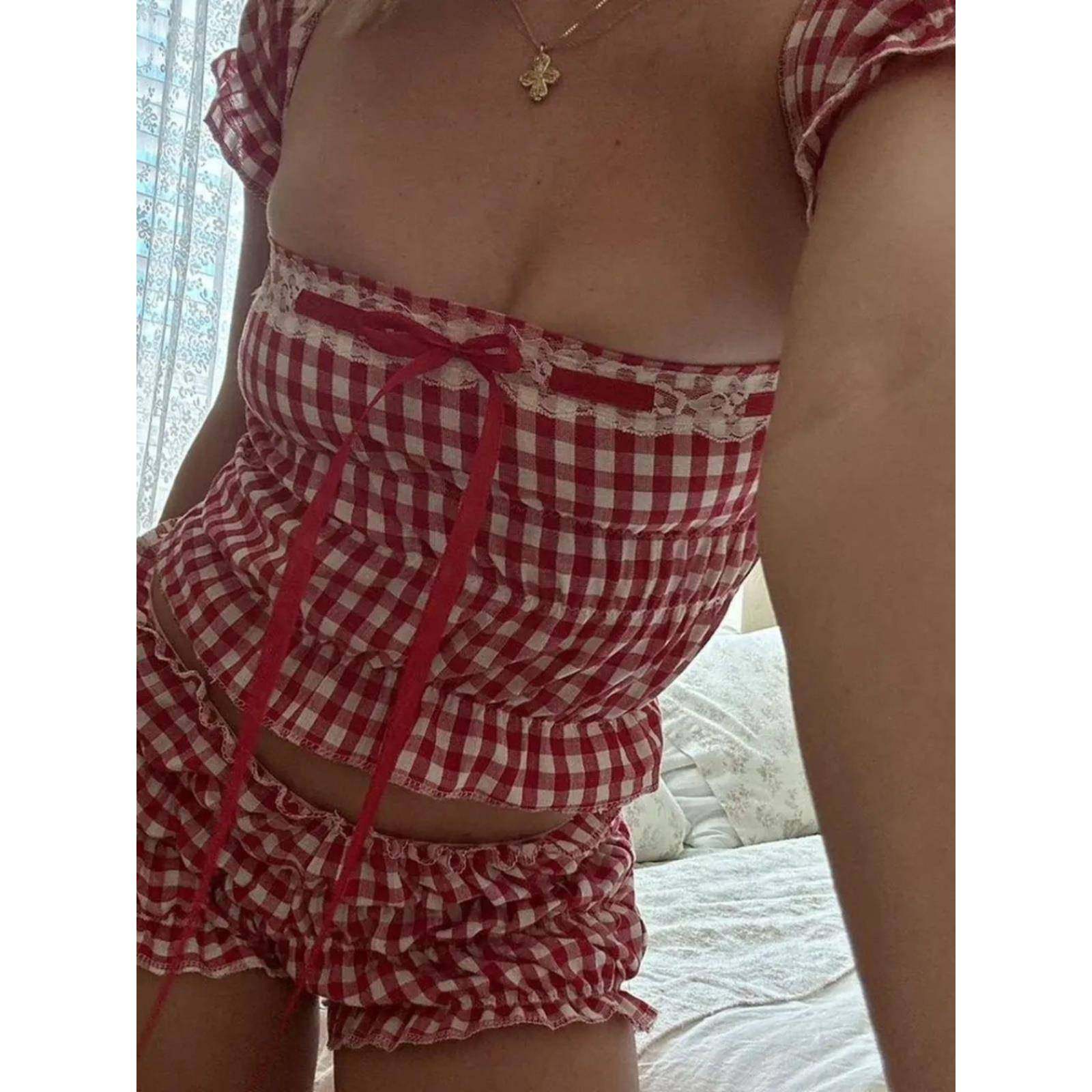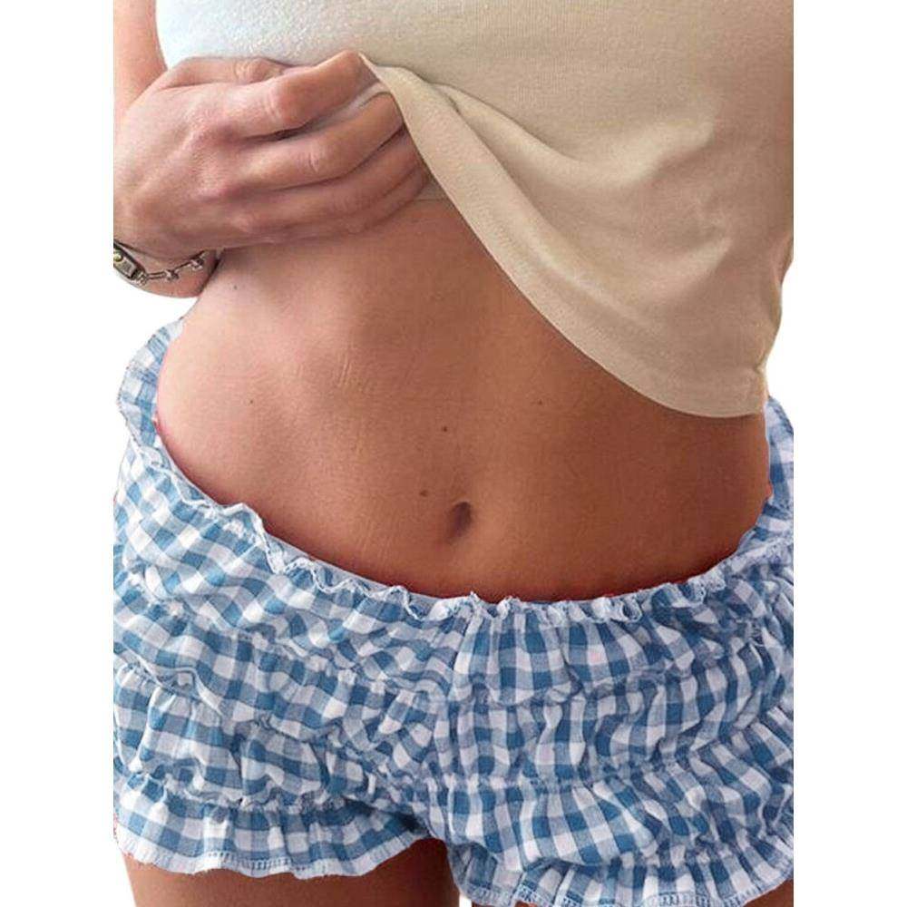 📚 Leisure low waisted lace plaid shorts 休闲低腰花边格子短裤女