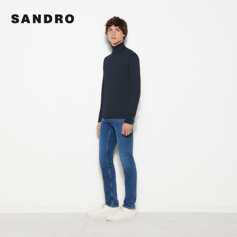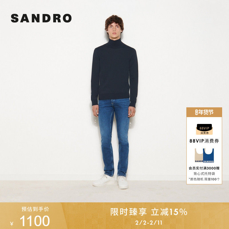 📚 SANDRO秋冬男装法式时尚休闲质感绵羊毛高领短款套头毛衣针织衫