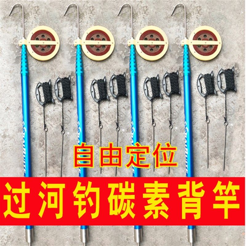 📚 过河钓碳素背杆4米收缩定位7节背轮过河钓滑轮过河钓配件