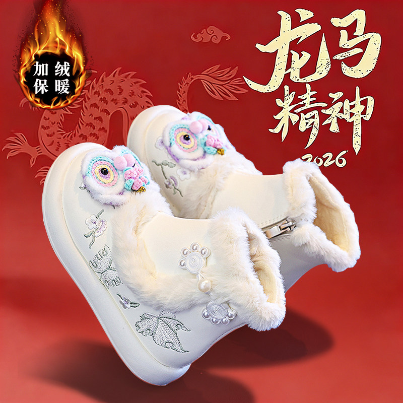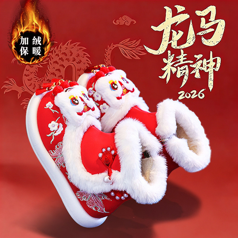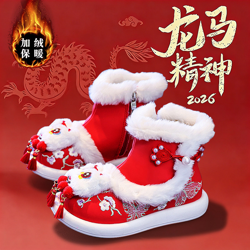 📚 官网C&K本命年女童汉服鞋冬季新款儿童绣花雪地靴红色加绒虎头鞋