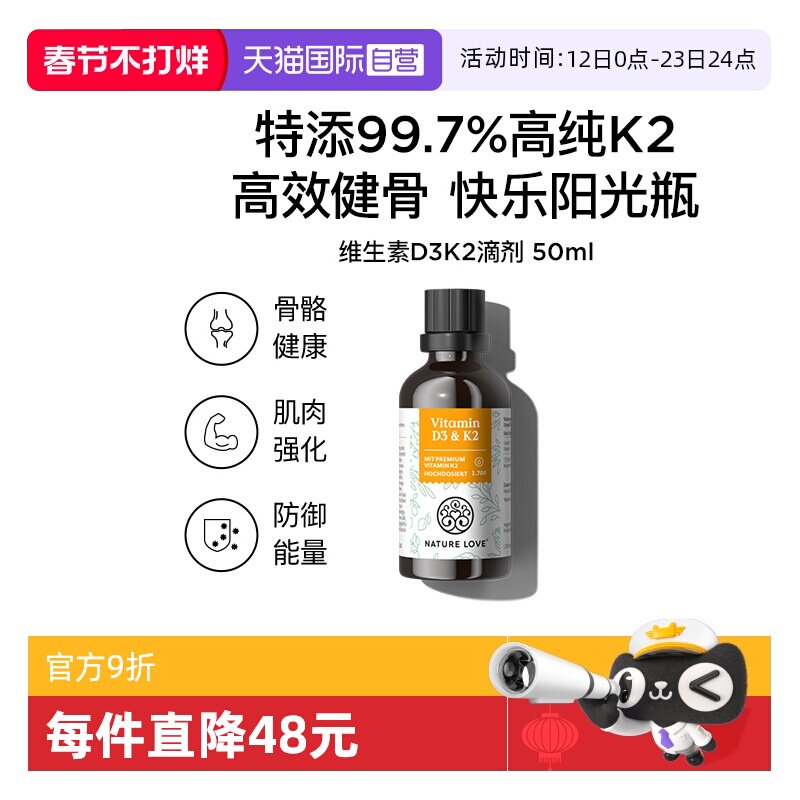 📚 【自营】NatureLove补钙人群维生素D3K2滴剂 德国进口全反式mk-7