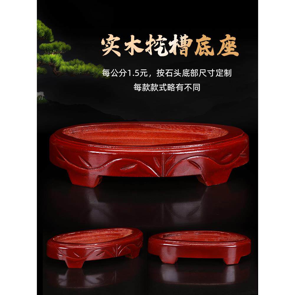 📚 泰山石底座实木托架泰山石敢当摆件奇石观赏石头木质托盘架子定制