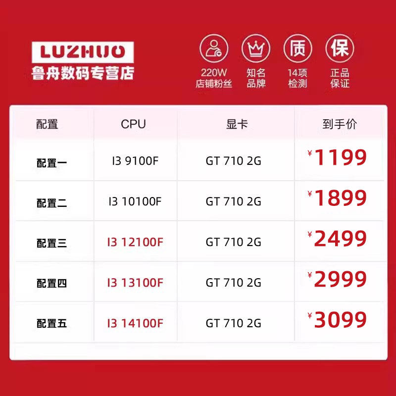 68¥ CA381 2czzUkxtPAZ¥ https://m.tb.cn/h.7uv92Tq 14代酷睿i3 14100/13100/12100/10100F商务办公台式电脑主机家用公司客服台式机平面设计组装DIY兼容整机全套 --------------------- 【原售价】1,799元 【现售价】1,199元。