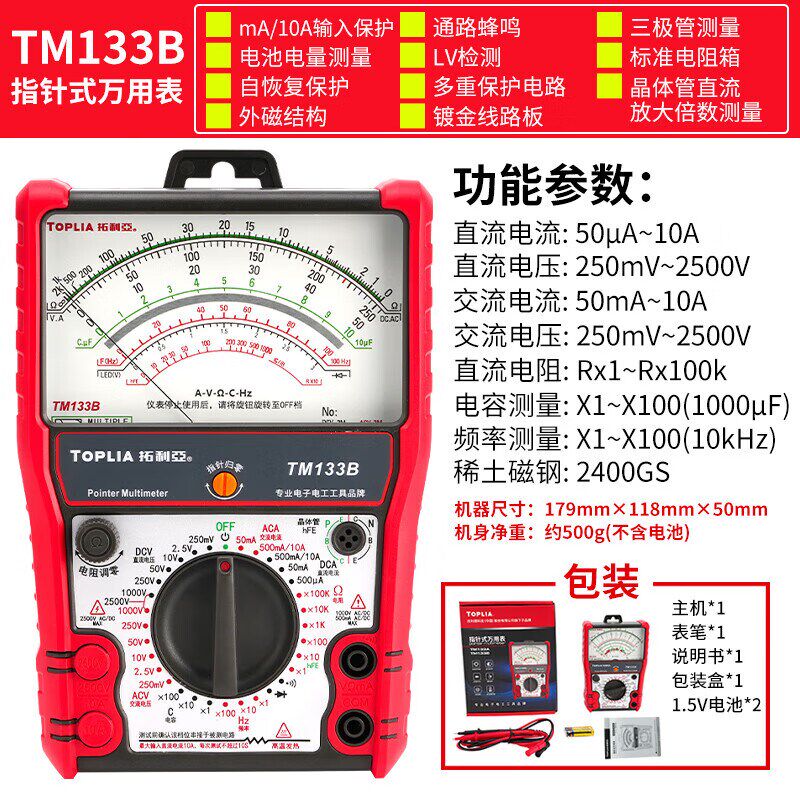 📚 优利德拓利亚指针式万用表高精度防烧电工万能机械表TM133A/B