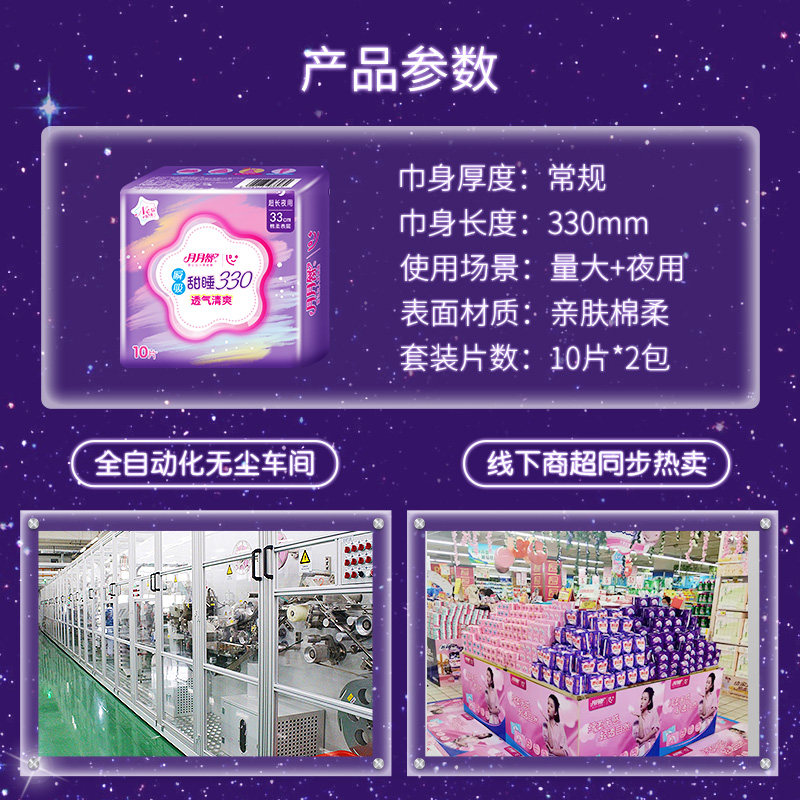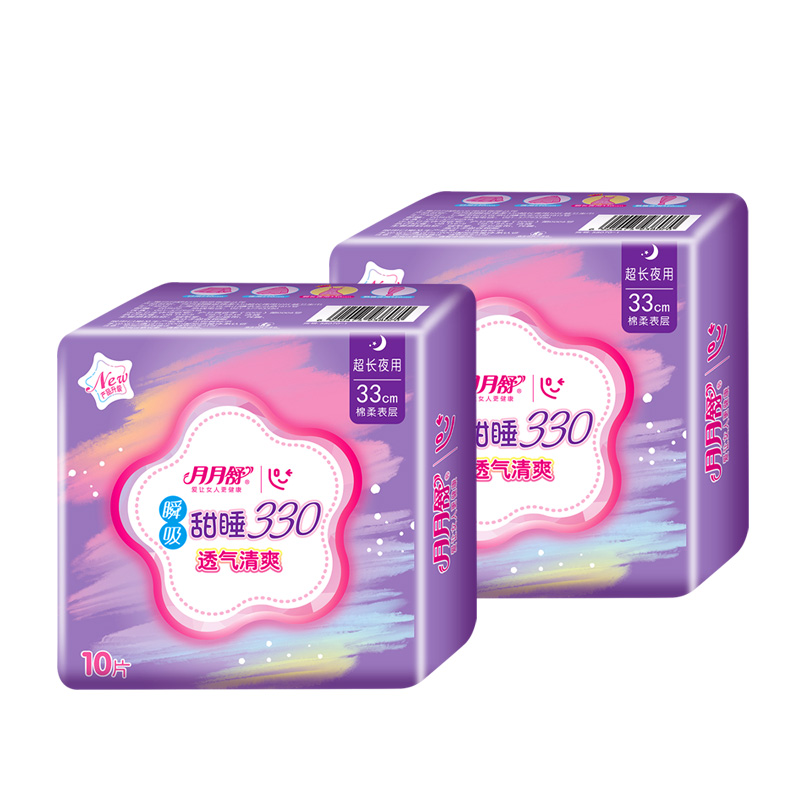 📚 买2件月月舒卫生巾棉柔贴身330mm加长夜用干爽防漏品牌国货姨妈巾