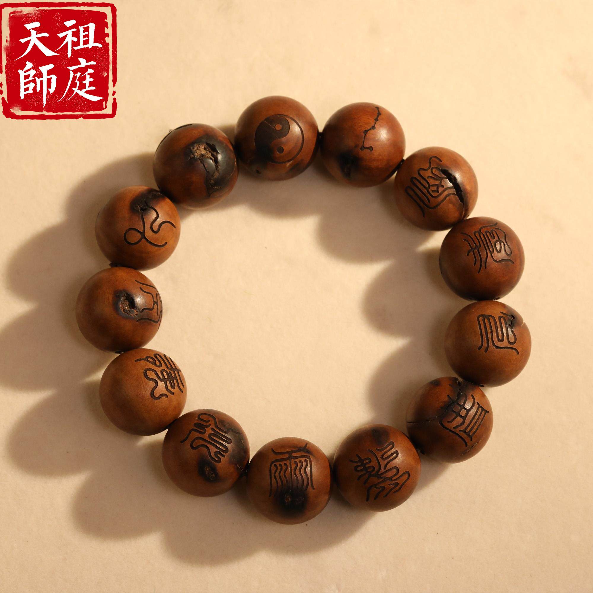 📚 龙虎山天师祖庭道家手串天然雷击枣木道系饰品老料十字田经念珠