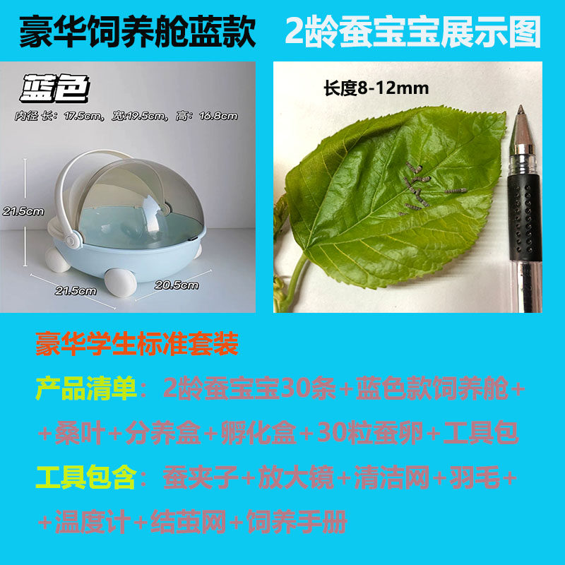 📚 学生养蚕套装蚕宝宝活体新鲜桑叶蚕卵幼虫专用饲养盒箱太空养育舱