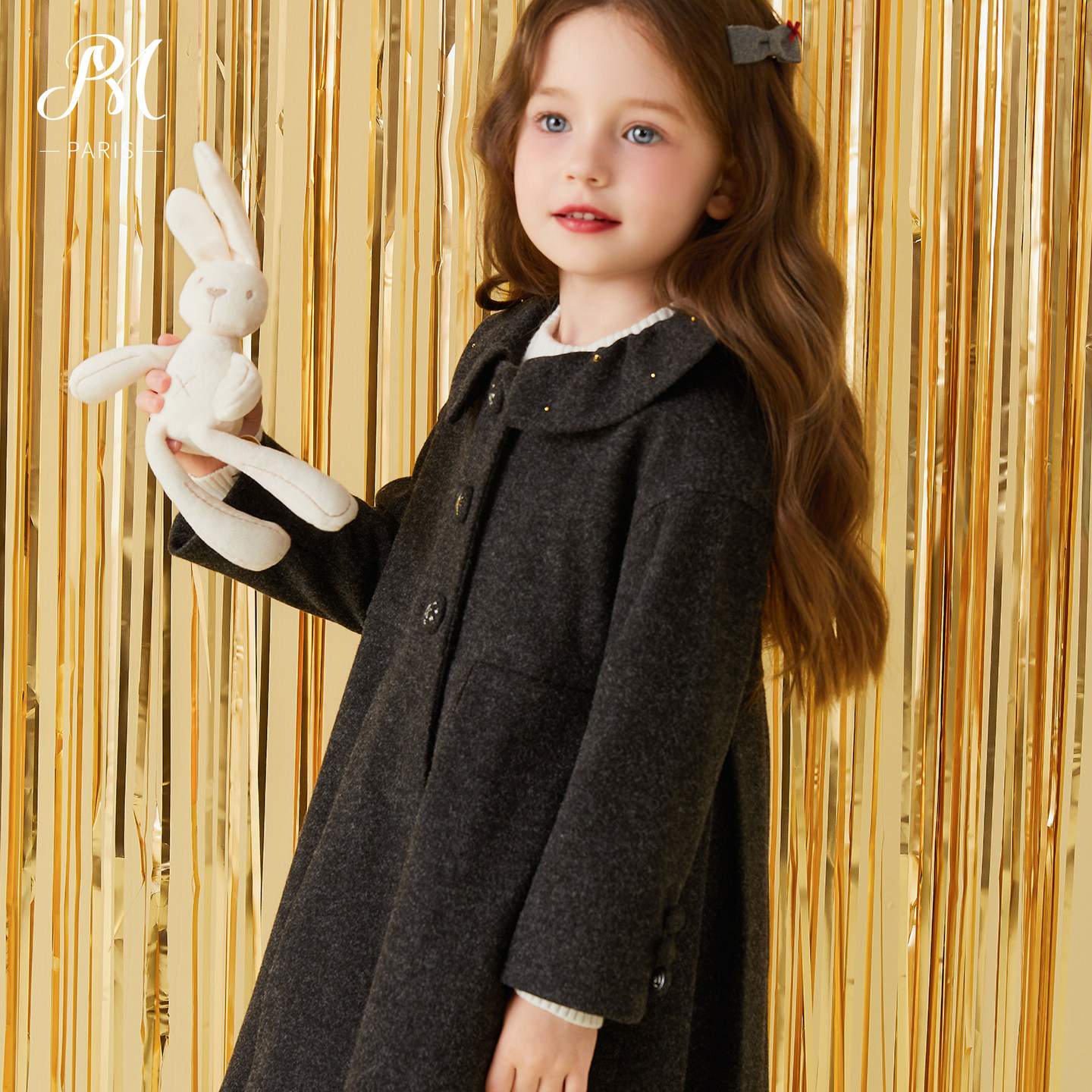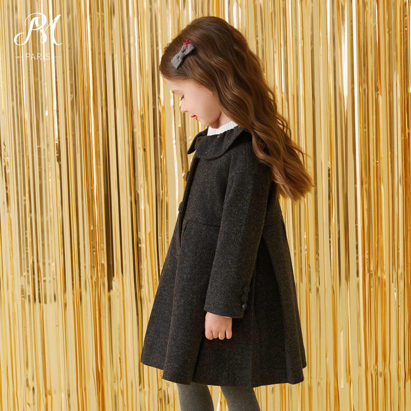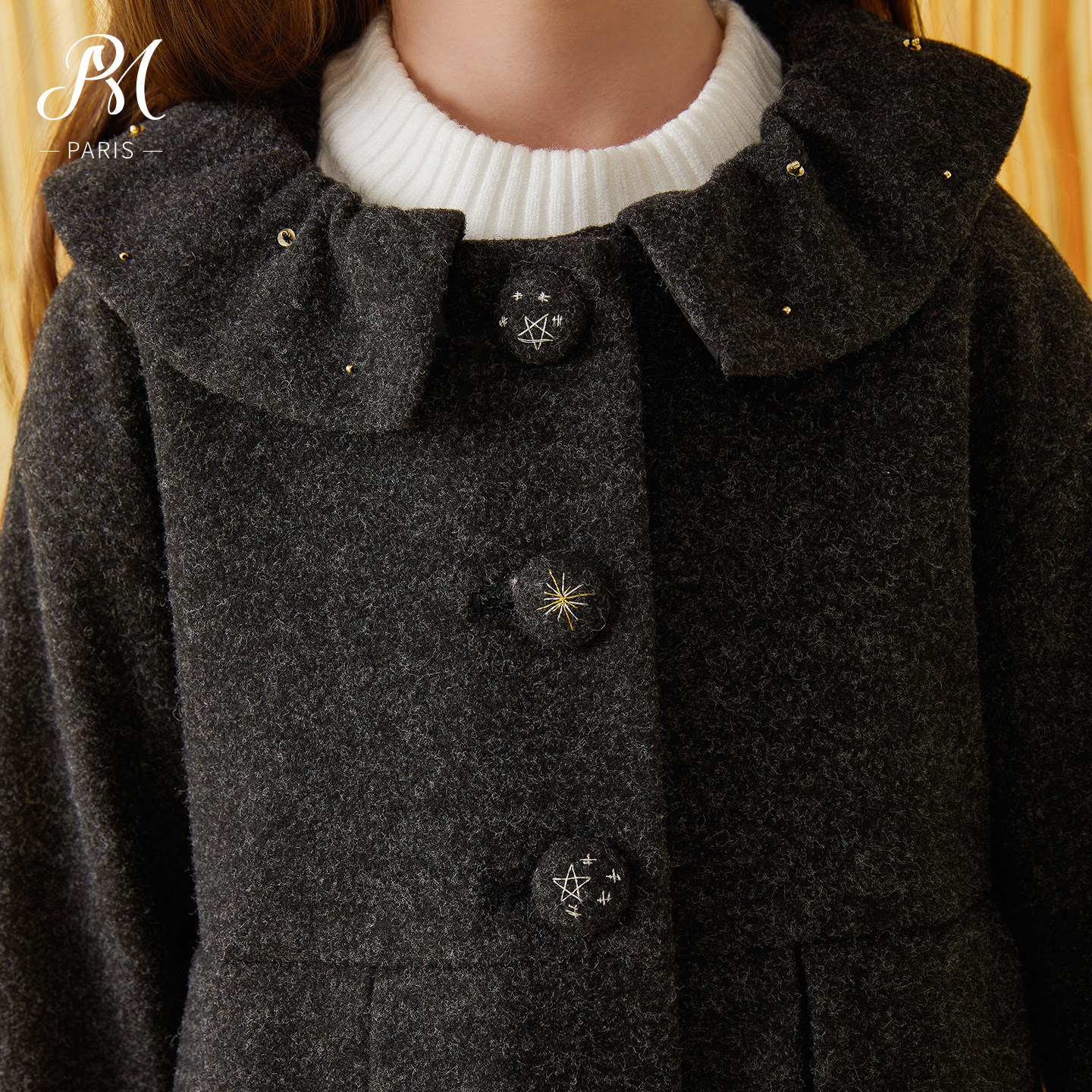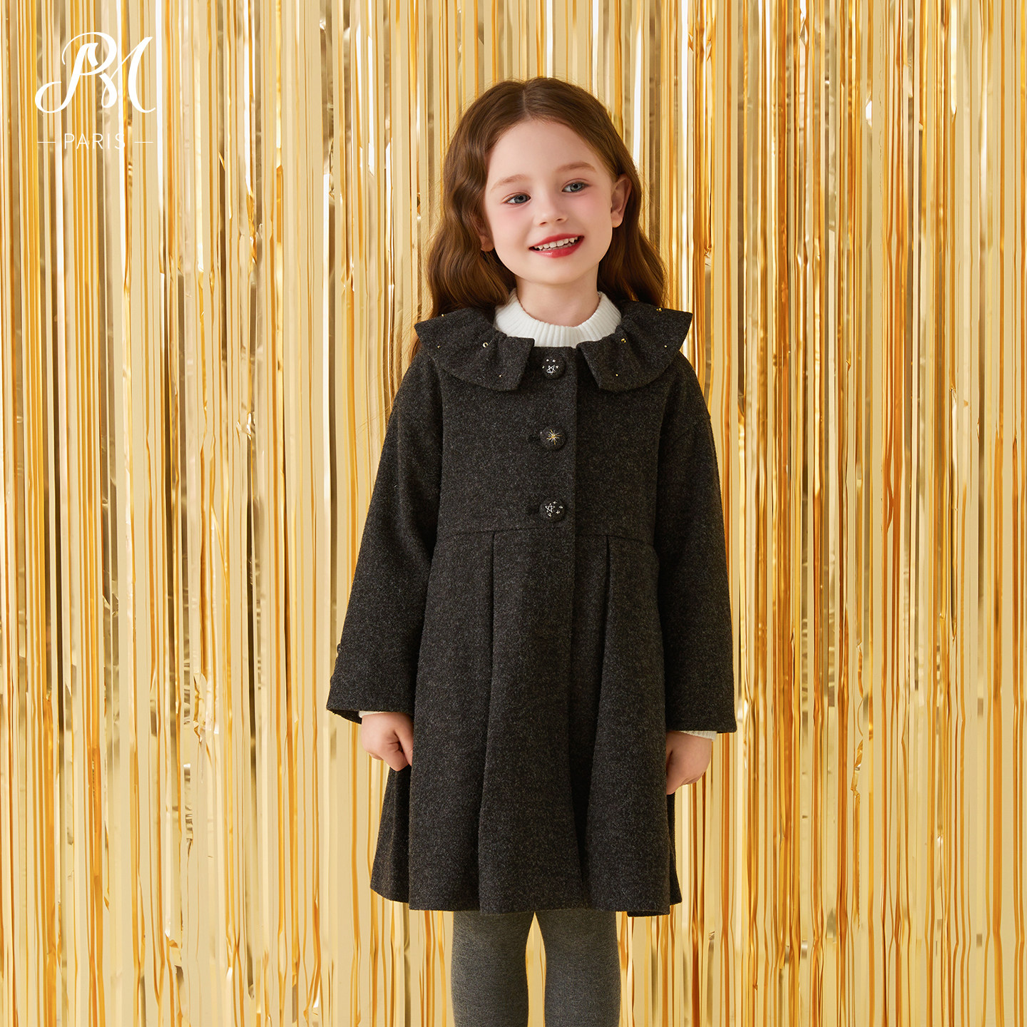 📚 Petite Marguerite小雏菊童装·miu系高级感复古灰色荷叶领呢大衣