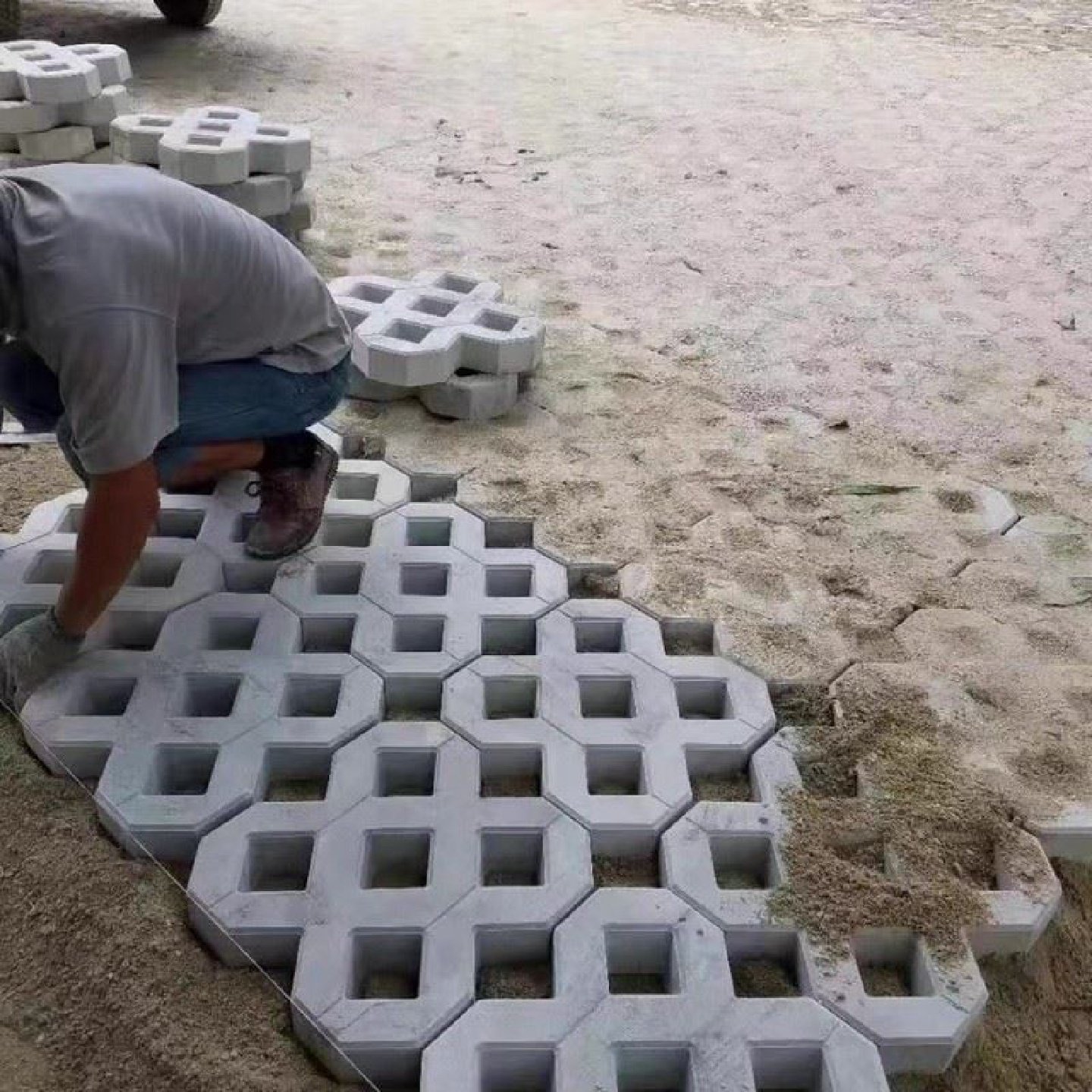📚 双八字植草砖绿色双8型停车场草坪砖预制井字四孔水泥停车位地砖