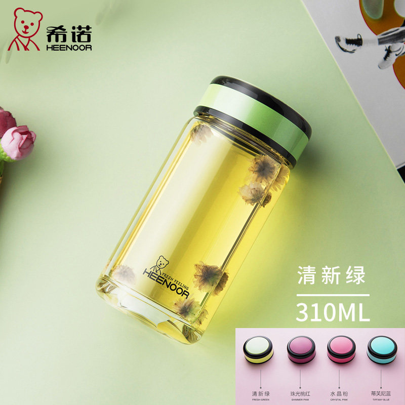 📚 希诺玻璃杯女士单层水杯迷你学生可爱矮胖小巧便携泡茶水杯ins风