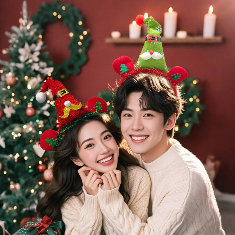 📚 圣诞帽子头饰男女圣诞鹿角发箍装扮红鼻子派对氛围拍照装饰道具