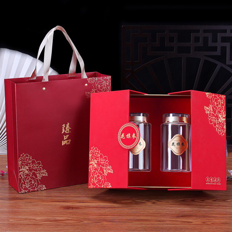 📚 双开关花旗参片包装盒通用滋补品礼盒装高丽参空盒装双瓶礼盒定制