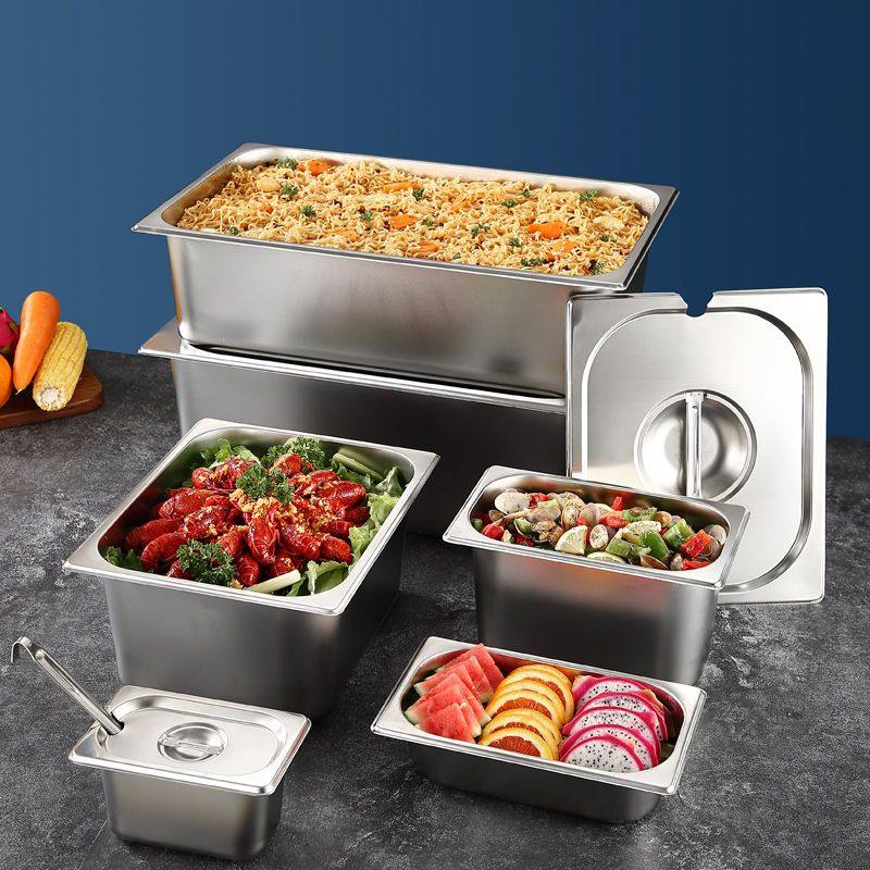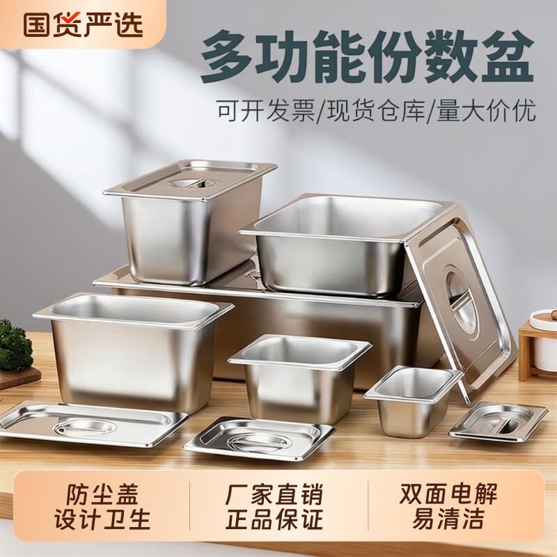 📚 不锈钢份数盆盒子分数盒餐盆餐盒打菜盆盛菜盆长方形带盖不绣钢