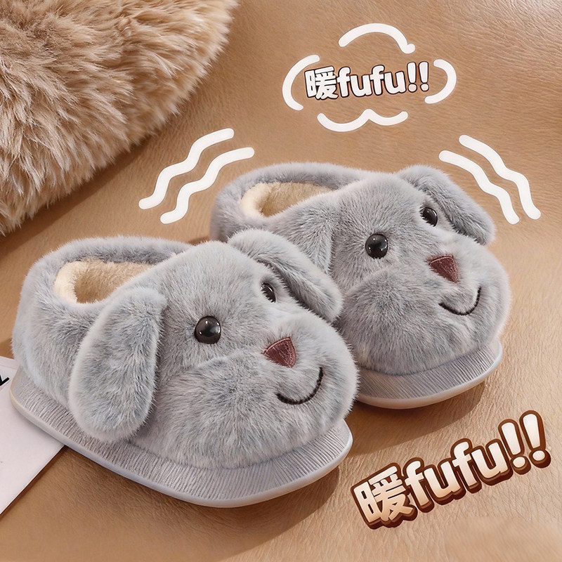 📚 亲子棉拖鞋家居卡通可爱小狗保暖防滑男童女童室内冬季儿童毛绒鞋