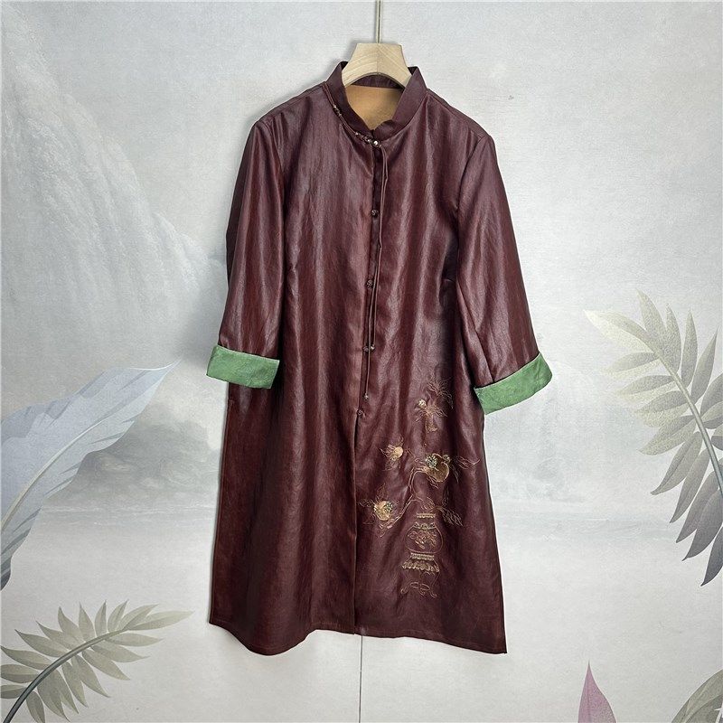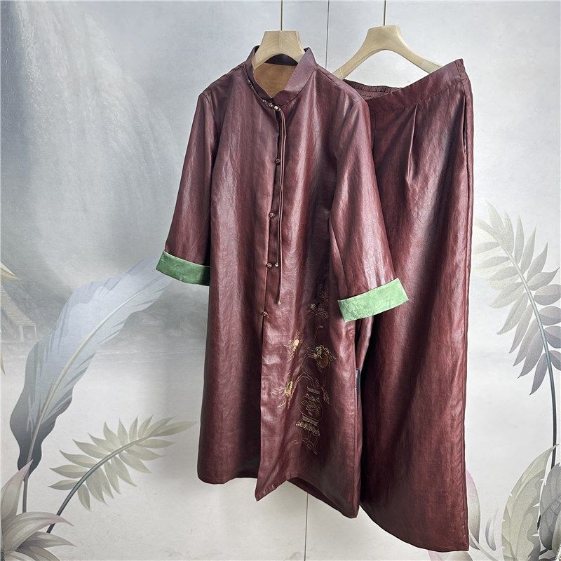 📚 诗家~高货!正宗香云纱时尚皮料上衣+阔腿裤真丝两件套红云纱套装