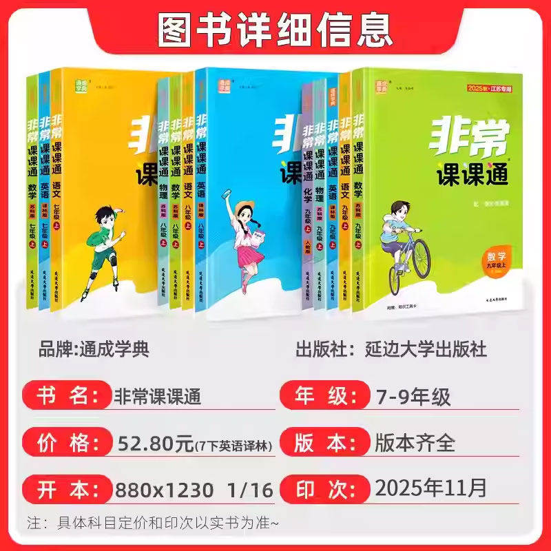 📚 2026春通城学典非常课课通七八九下册语文数学英语物理化学人教苏科译林江苏专用版初中一二三年级贯通教材直通中考掌握各科知识点
