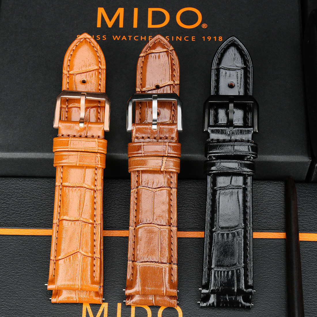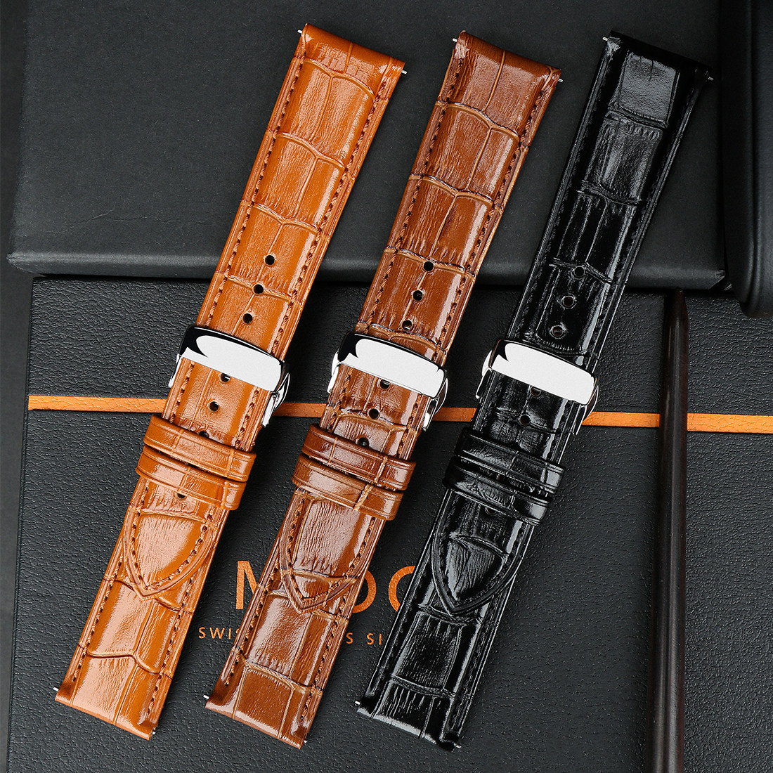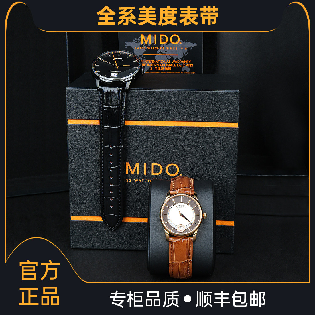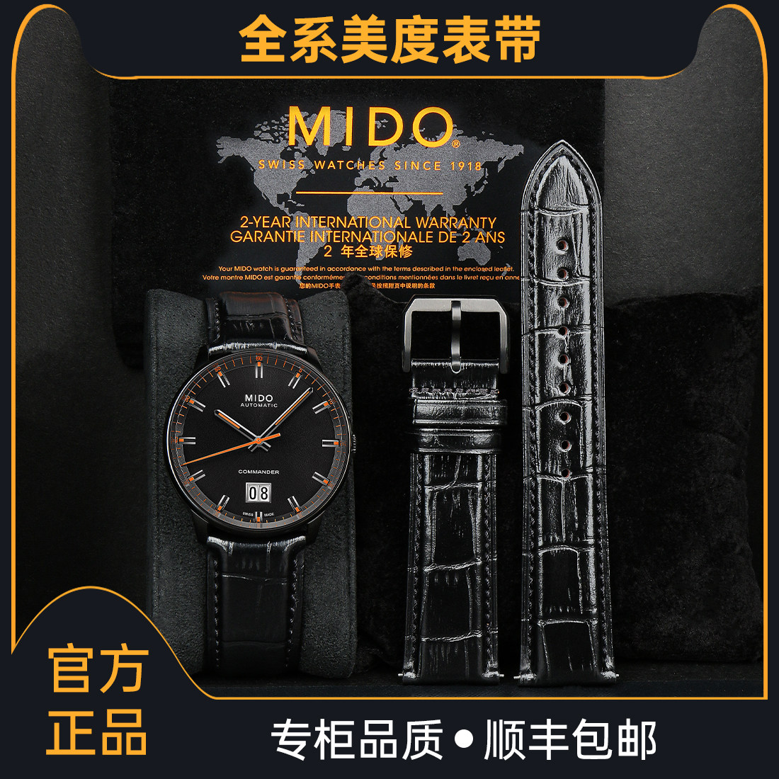 📚 美度表带真皮适用贝伦赛丽指挥官舵手领航者蝴蝶扣男女牛皮手表带