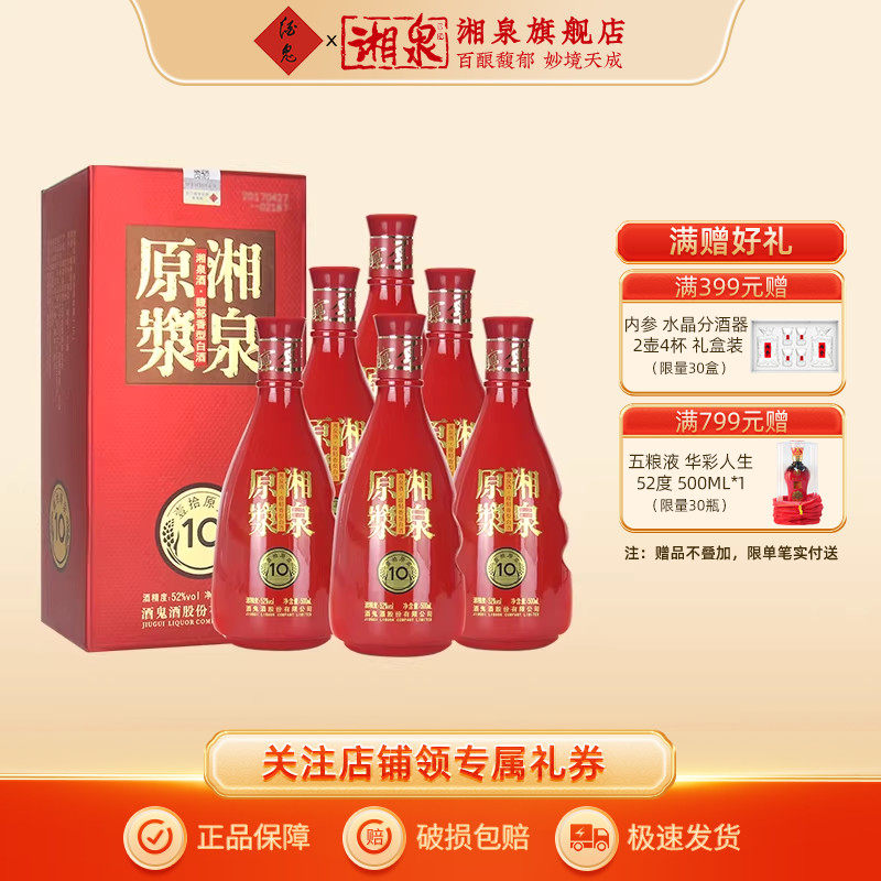 📚 湘泉酒52度湘泉原浆10馥郁香型国产白酒500ml礼盒装壹拾原浆