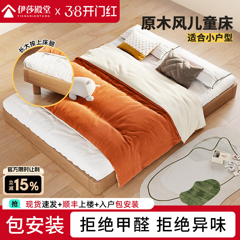 📚 儿童床全实木蒙氏地台无床头公主女孩卧室小男孩1米5悬浮地板单人