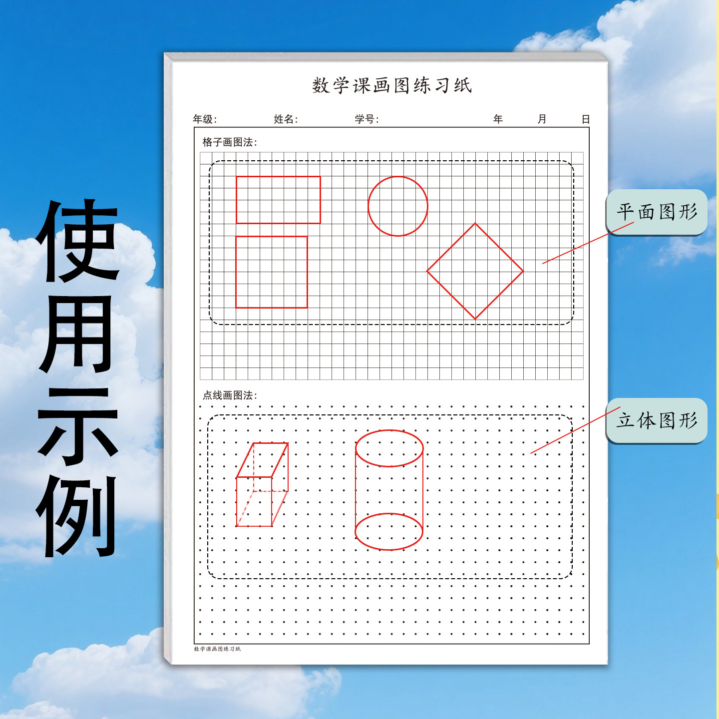 📚 直观法点子画图练习纸方格小学生初中生画正方形长方形平行四边形等平面图形立体图形数学描点画图专项练习册