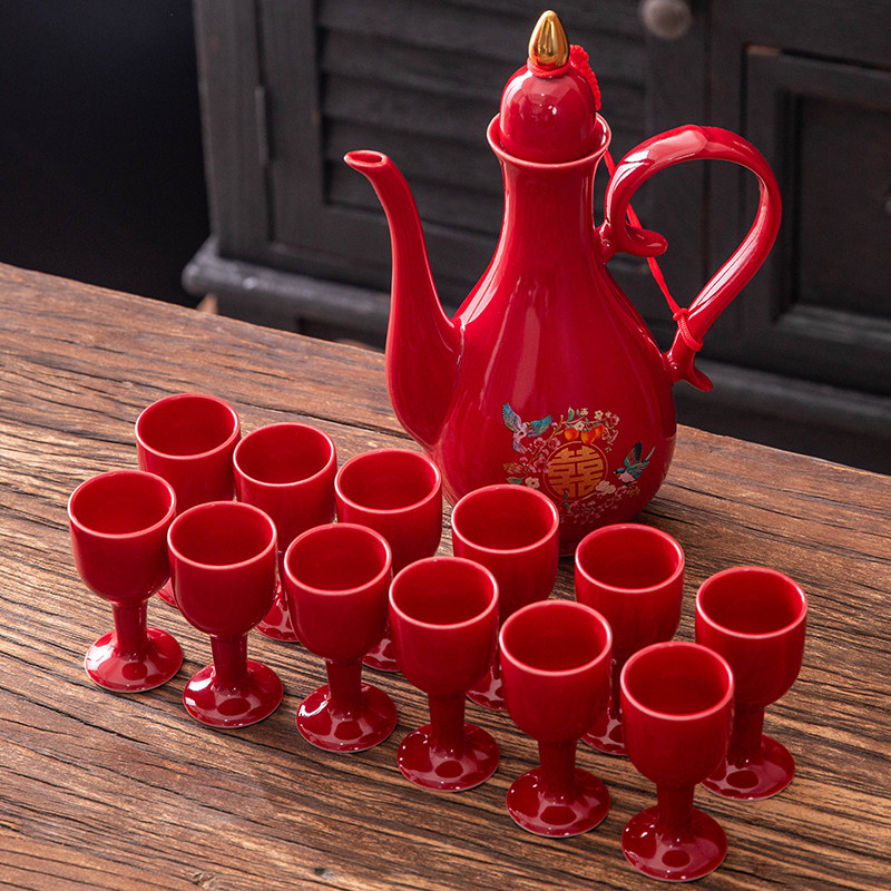 📚 中式结婚敬酒壶酒杯婚宴婚礼敬茶家用酒具红色酒杯交杯酒订婚陪嫁