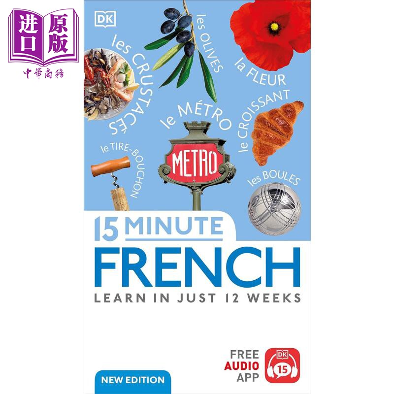 📚 预售 15-Minute French DK 15分钟学法语 英文原版进口图书 法文语言学习 单词词汇语法书教辅【中商原版】