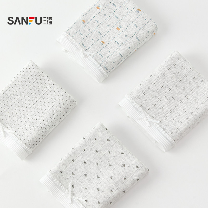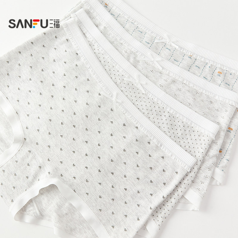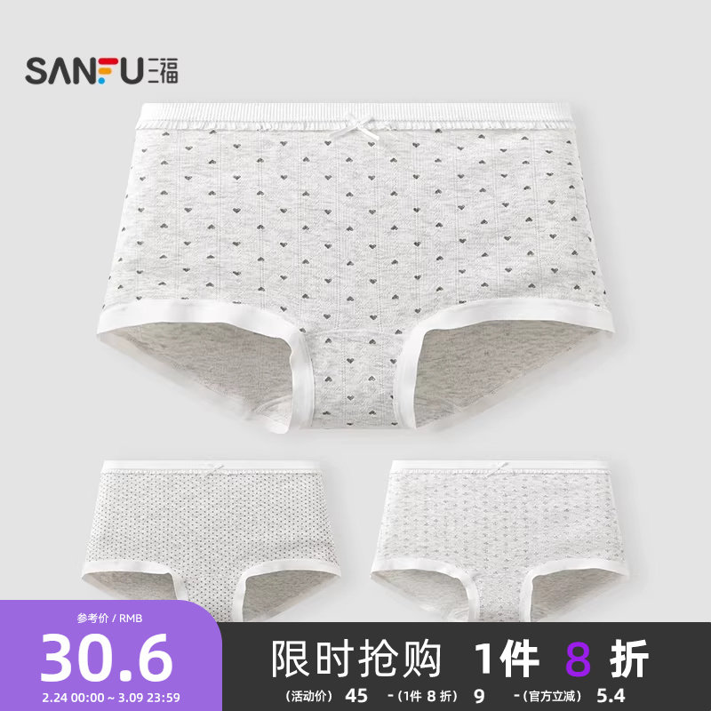 📚 三福【2条装】 内裤女中腰包臀内裤无痕脚口抗菌印花女式平角裤