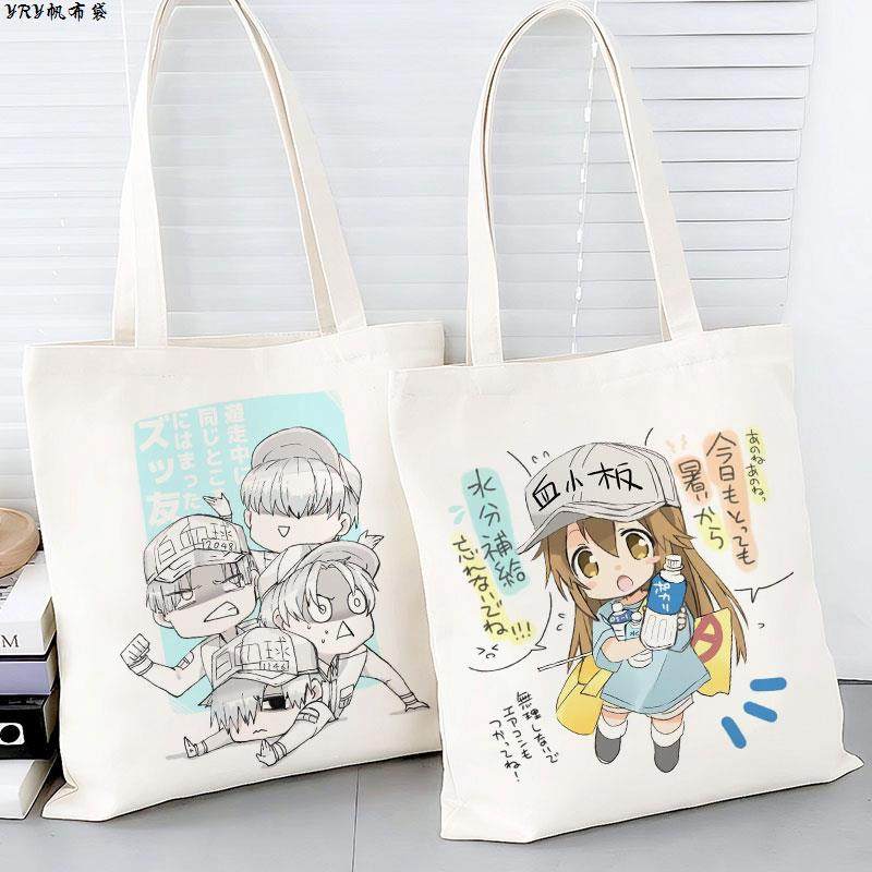 📚 工作细胞血小板周边帆布包白细胞学生大容量拎书补习单肩包手提袋