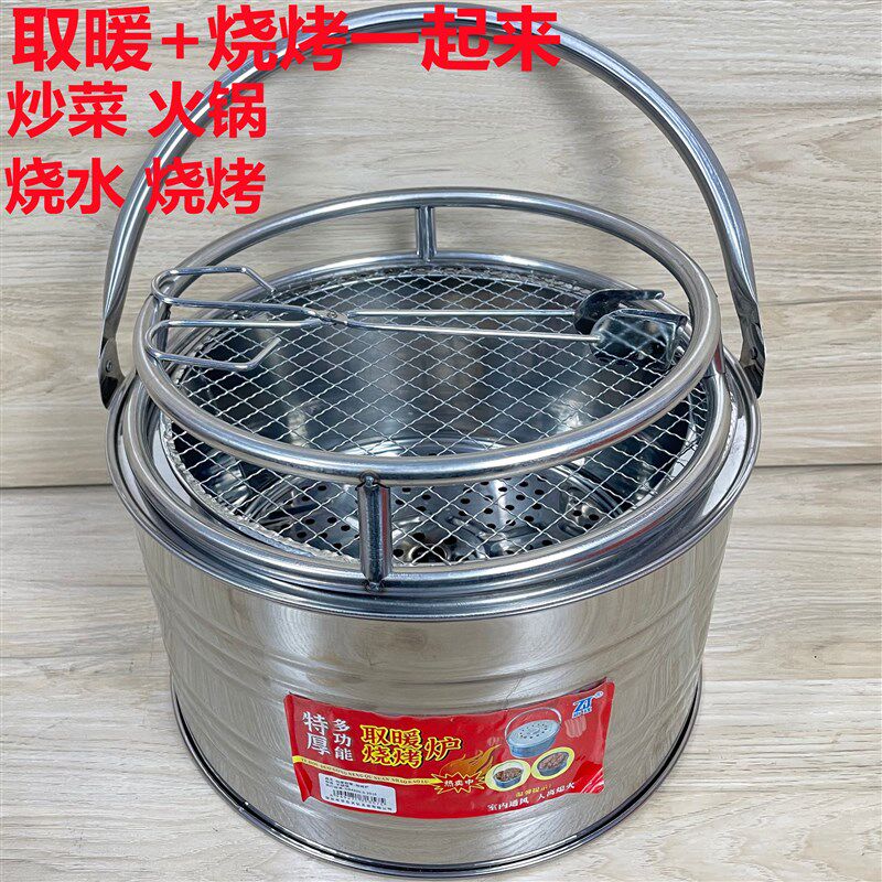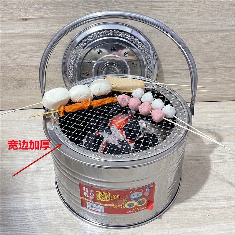 📚 加厚新款不锈钢木炭火盆手提烤火盆小炭盆碳火炉子烧烤炉盆搬家火