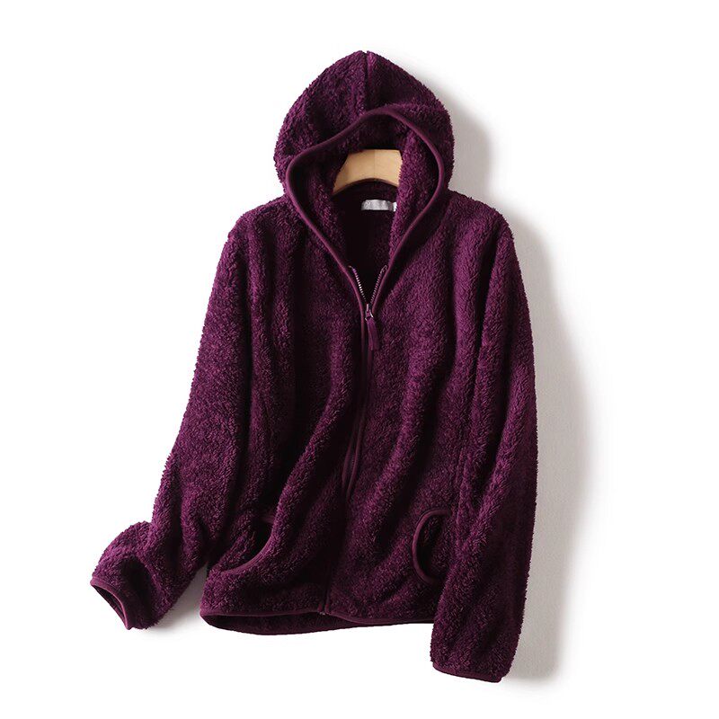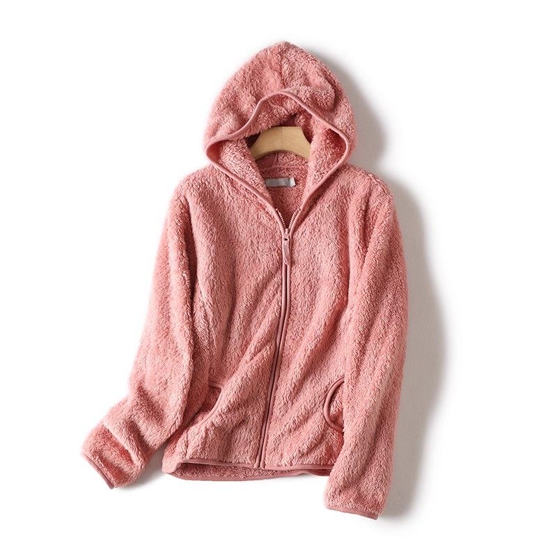📚 包邮春秋柔软有弹力珊瑚绒拉链连帽女外套百搭多色纯色有口袋休闲