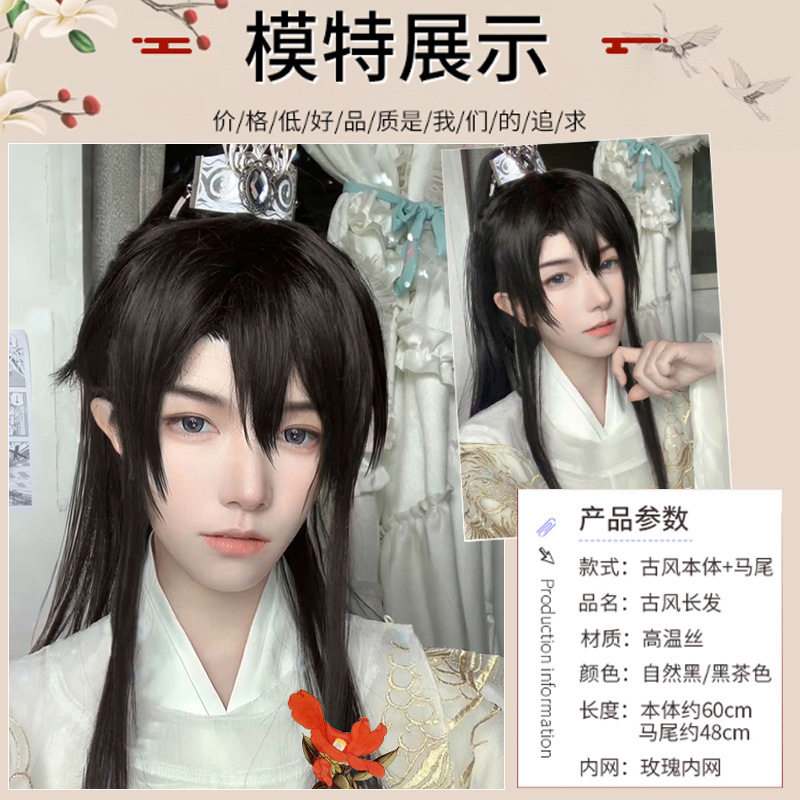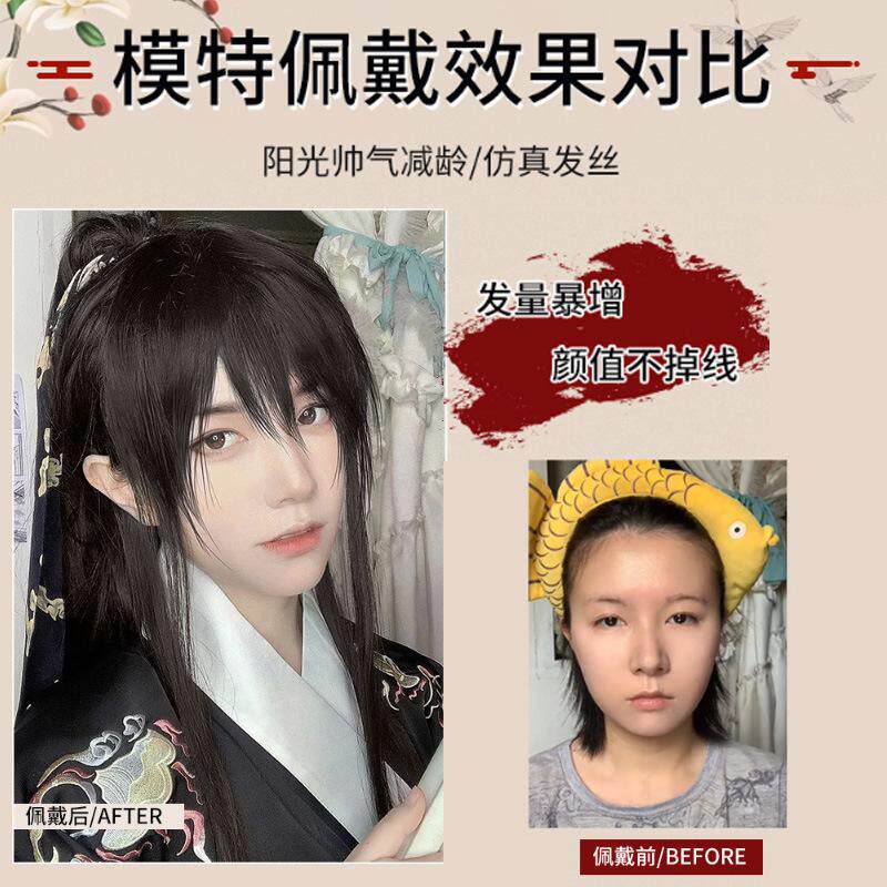 📚 古风假发男女通用少年感万用cos李火旺新中式汉服高马尾全头套式