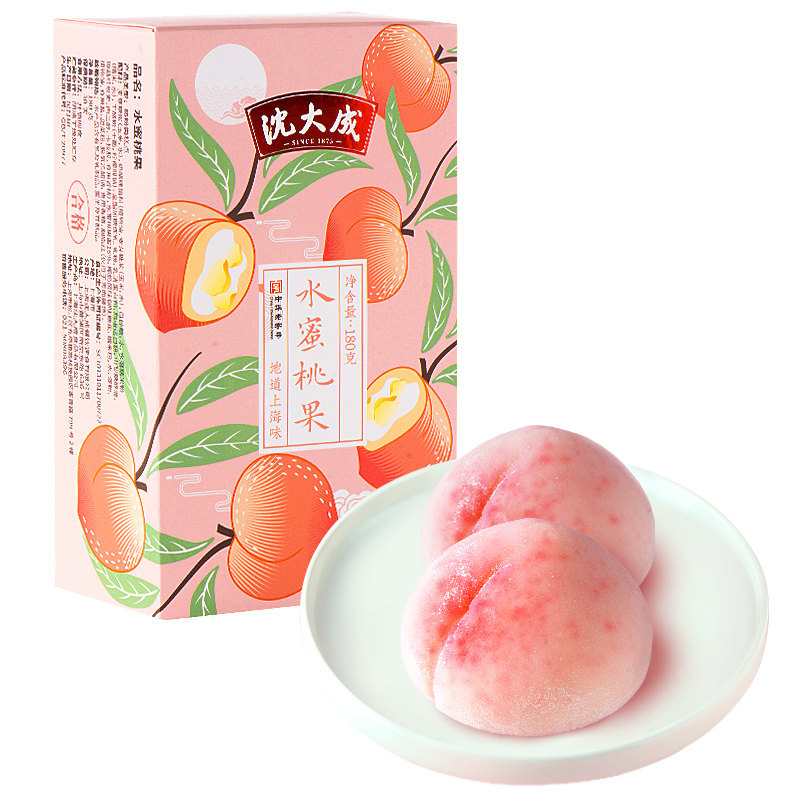 📚 沈大成水蜜桃菓麻薯桃桃糯米糍大福零食糕点上海特产白桃雪媚娘
