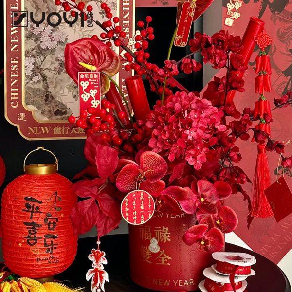 📚 优艺 福禄双全抱抱桶福桶花盒国风插花盒礼盒烫金圆形花盒红色