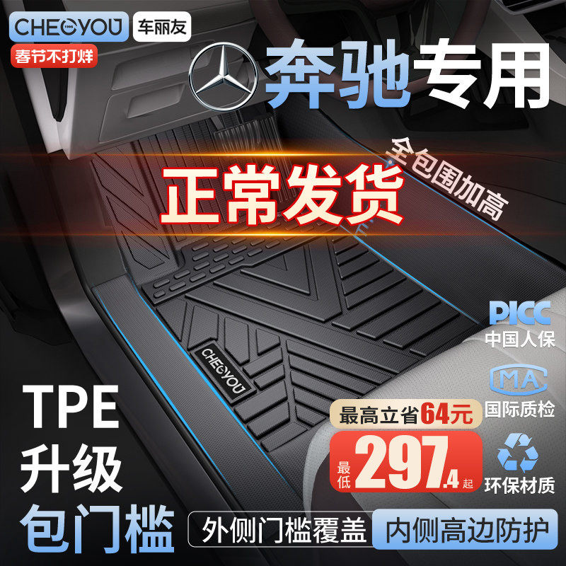 📚 车丽友适用26款奔驰E300L C260L C200L GLC260 GLA200TPE汽车脚垫