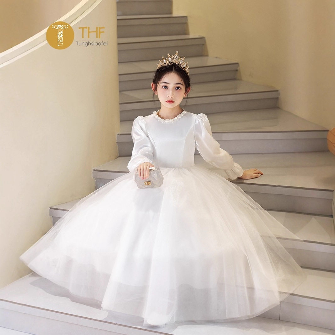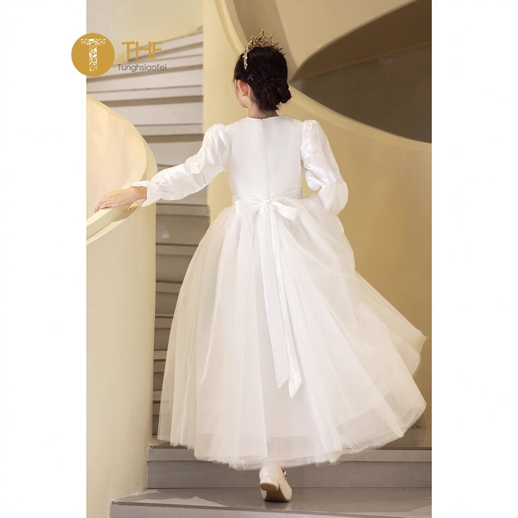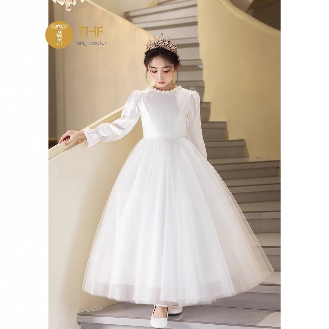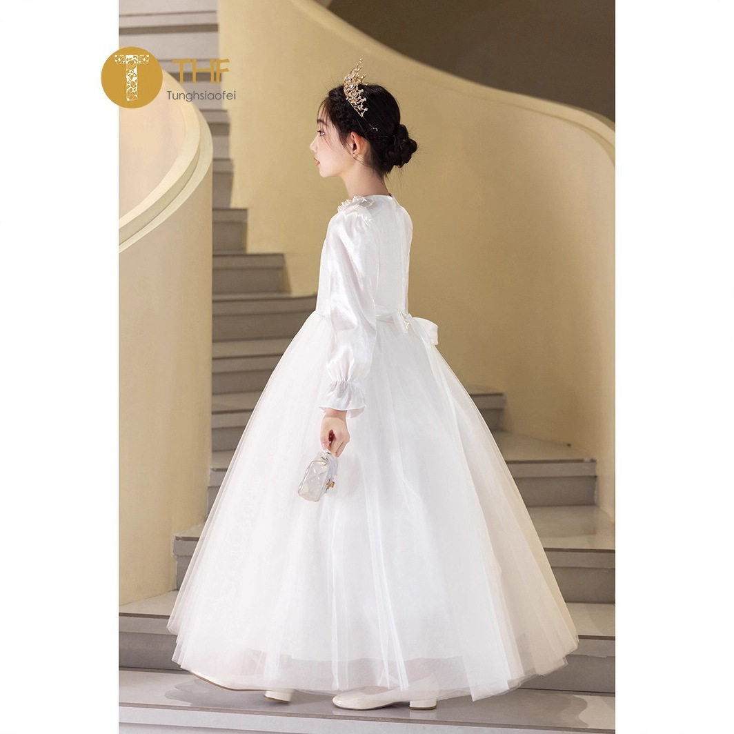 📚 新款高端女童主持人晚礼服长袖冬季花童婚礼生日钢琴演奏公主裙