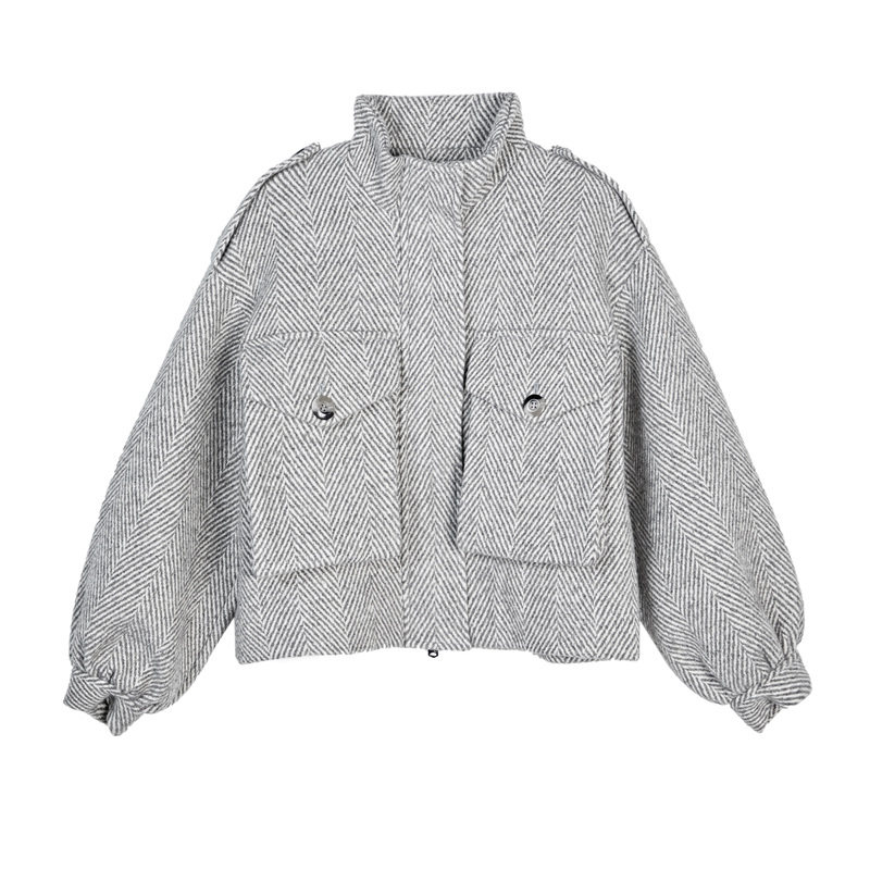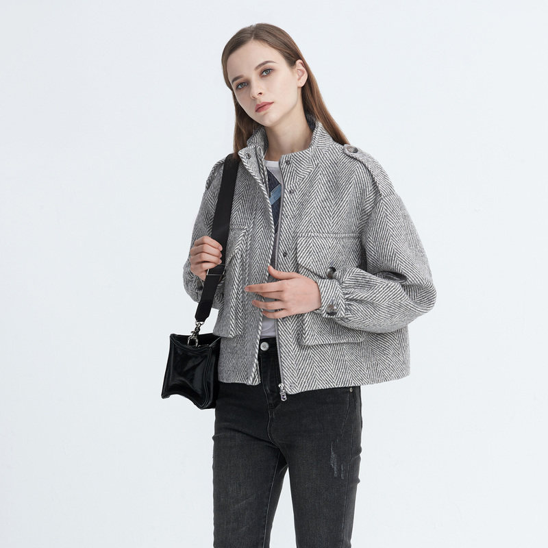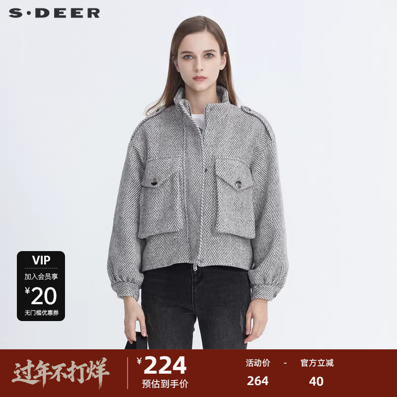 📚 S·DEER圣迪奥女装时尚立领条纹落肩袖短款外套S20482211
