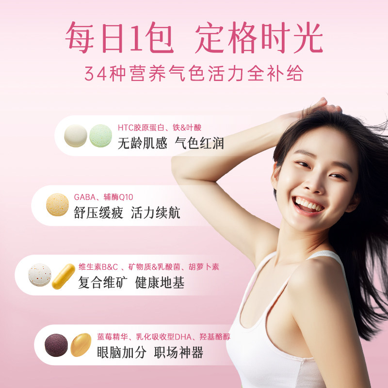 这款艾天然营养素包含了丰富的维生素B族和胶原蛋白,能够满足女性日常所需的各种营养。特别是对于经常熬夜、工作压力大的女性来说,这款营养素真的是她们的贴心小助手。它能够帮助她们保持健康,提高免疫力,让肌肤更加紧致有弹性。