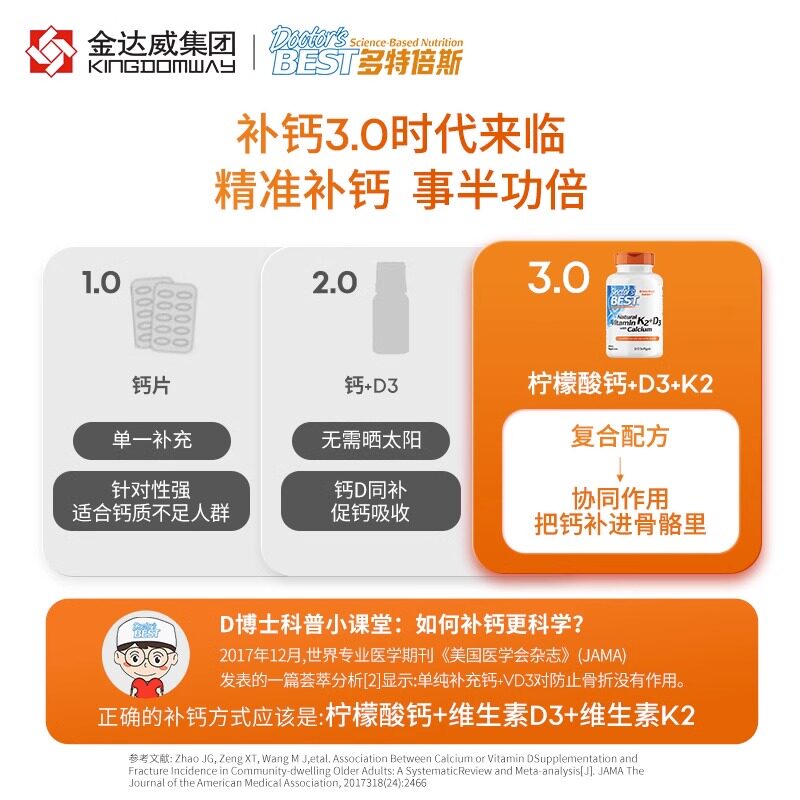 📚 品牌授权金达威Doctor's Best 天然维生素K2与D3钙软胶囊120粒